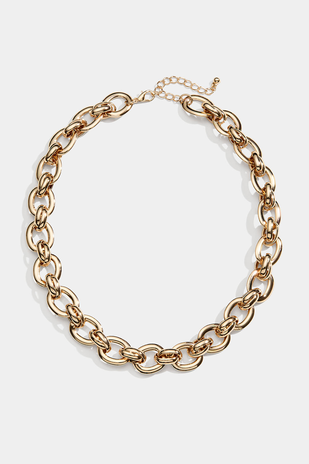 Gullfarget halskjede med ovale, flate lenker i metall