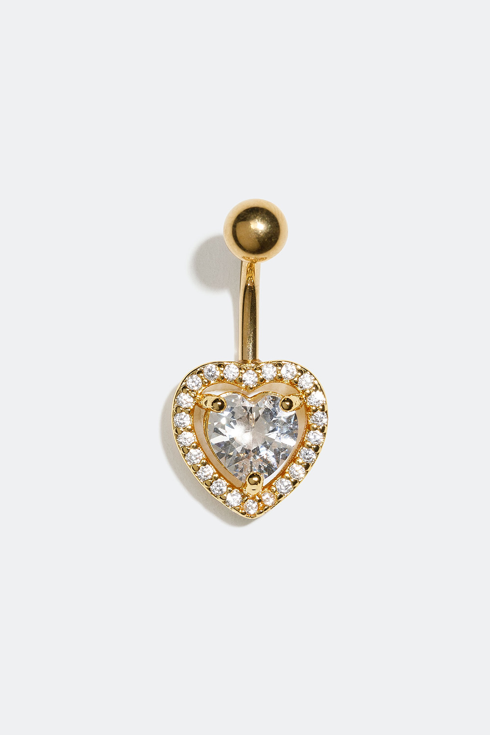 Gullfarget navlepiercing med hjerte og steiner i kubisk zirkonia i gruppen Smykker / Piercinger / Navlepiercing hos Glitter (255000330110)