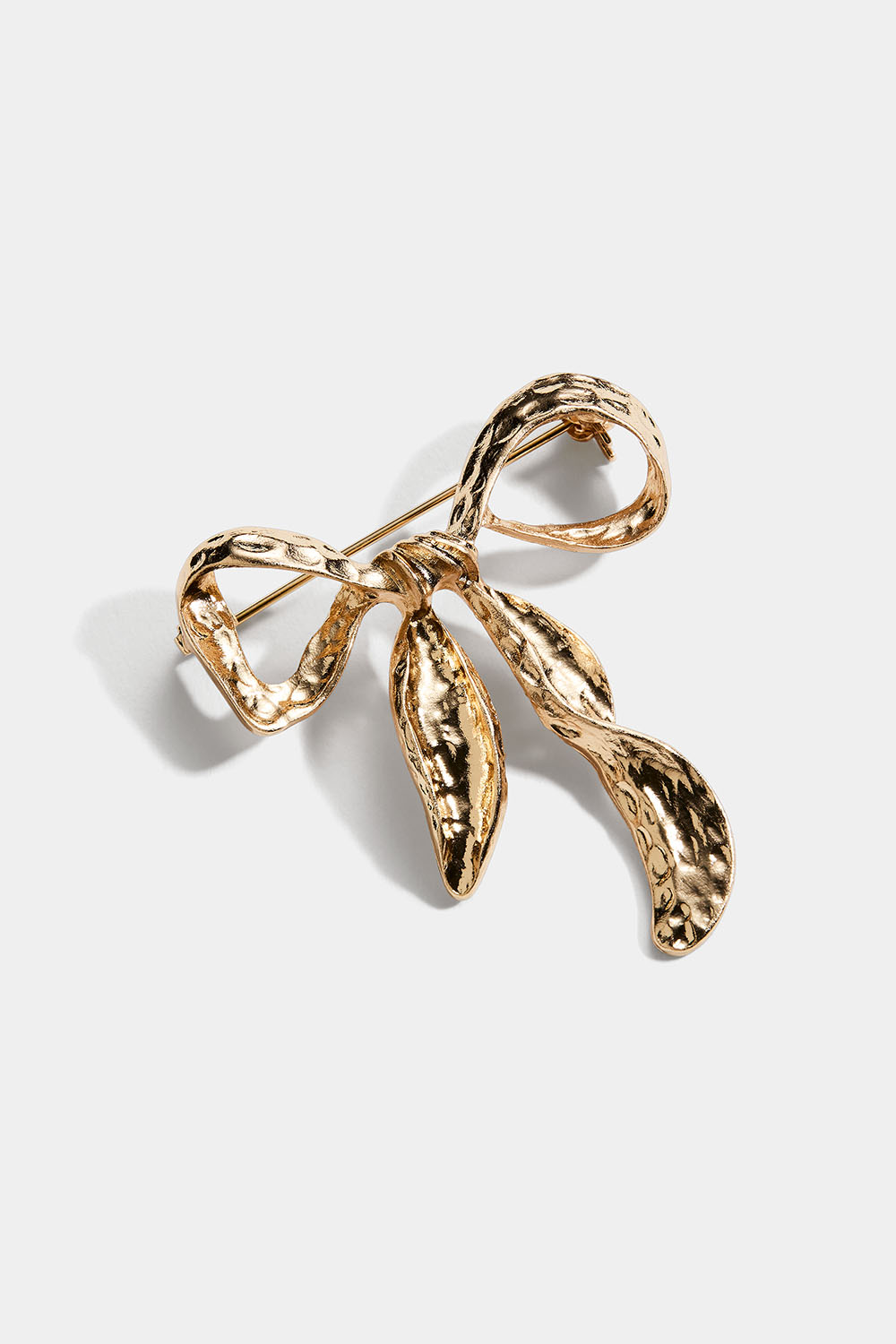 Sølje i gullfarget metall med sløyfe i hamret tekstur. Festes med en klassisk søljenål.