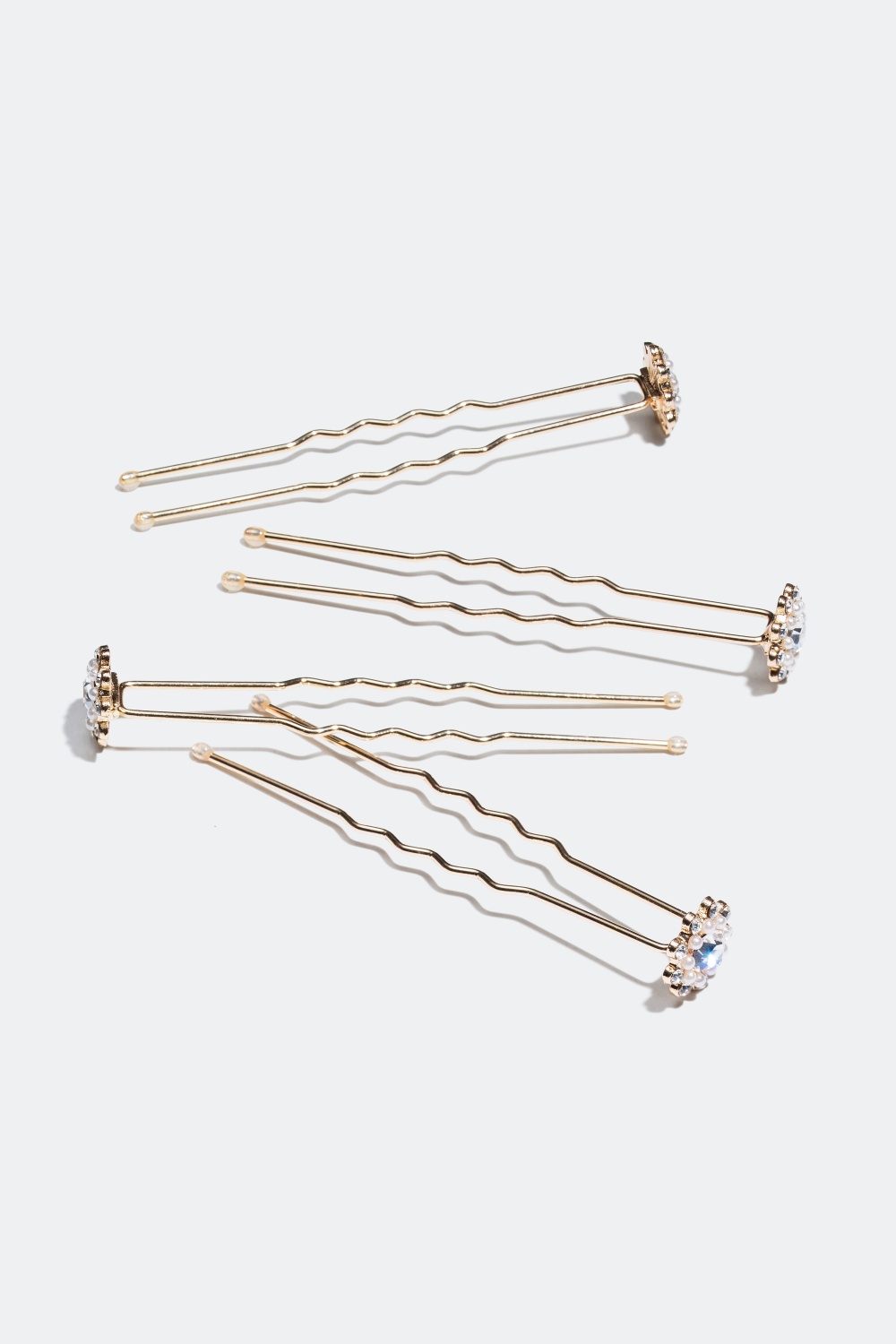 Gyllen hårnål med stein- og perledekorasjon, 4-pakning