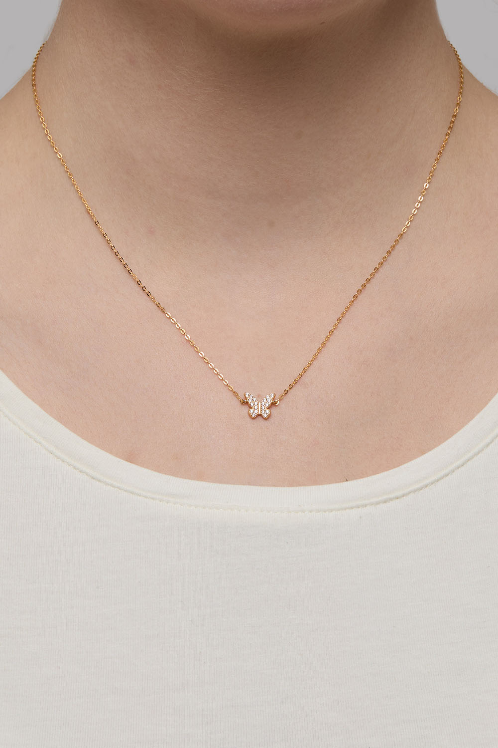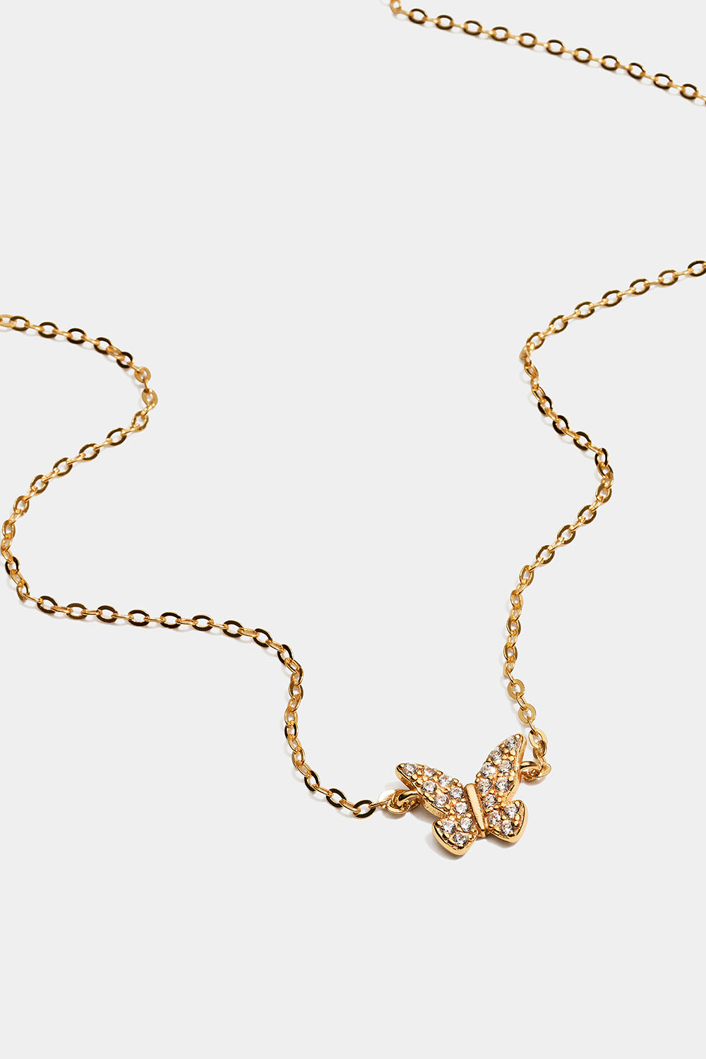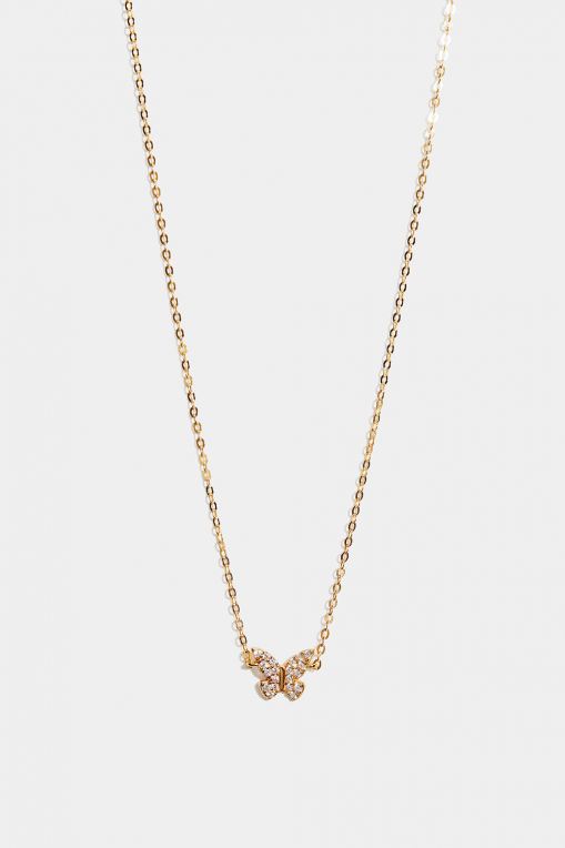 Halskjede i 18 karat gullbelagt sterlingsølv med en sommerfugl dekorert med kubiske zirkoniasteiner.