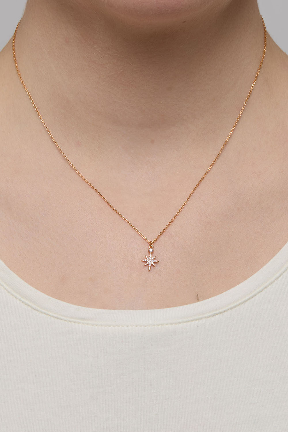 Halskjede i 18 karat gullbelagt sterlingsølv med stjerne og kubisk zirkonia i gruppen Gullbelagt ekte sølv / Gullbelagte halskjeder hos Glitter (554001372002)