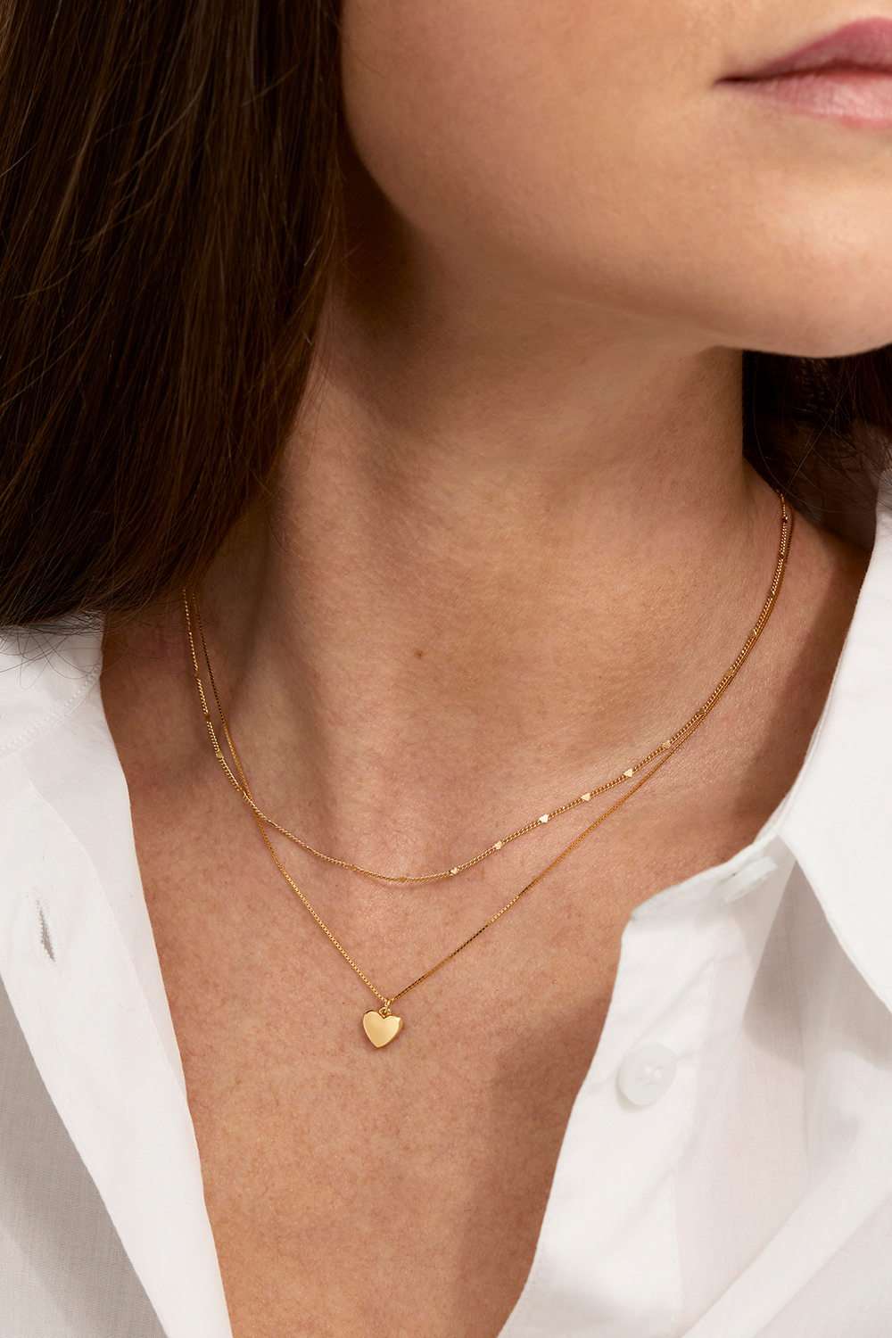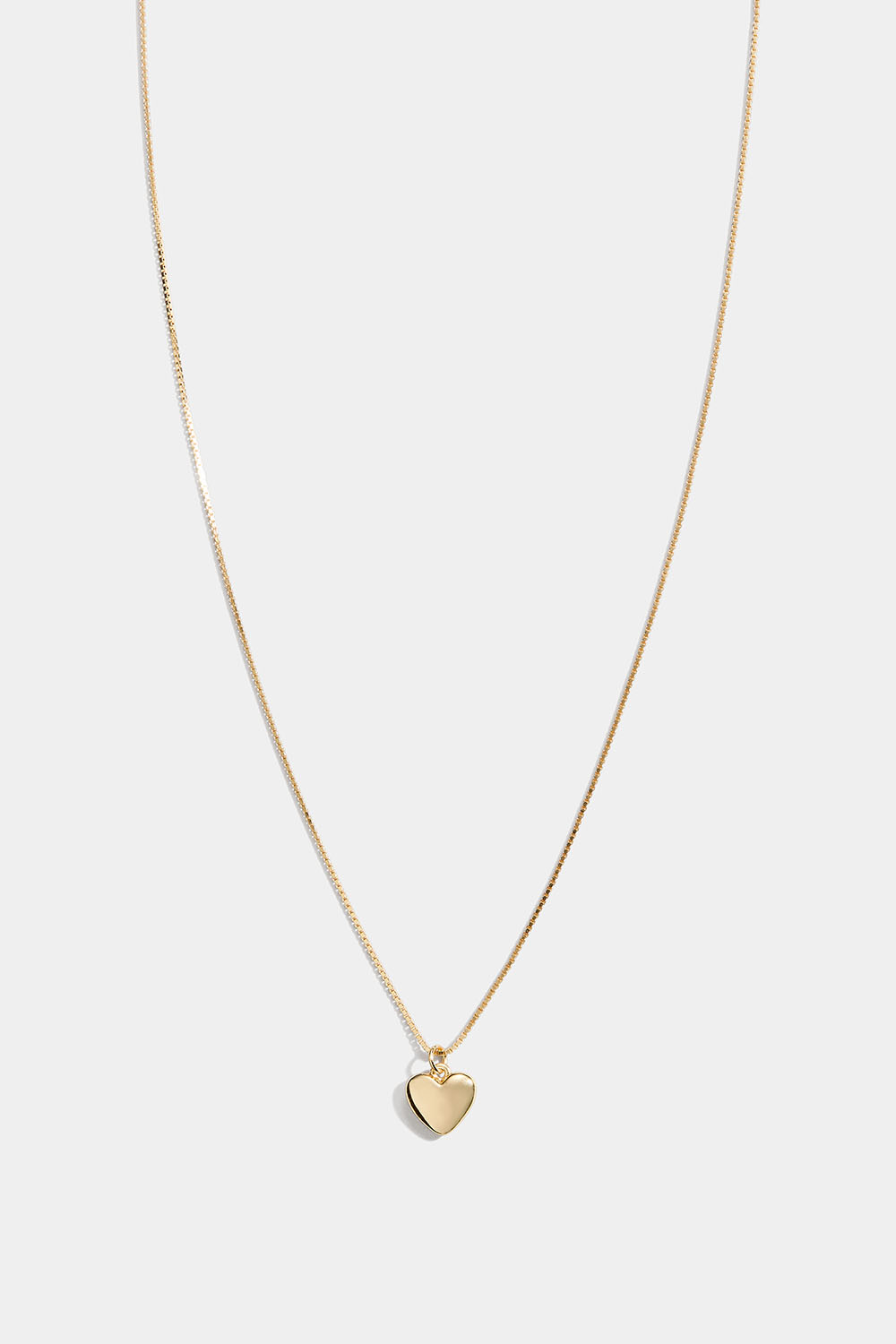 Tynt halskjede i 18k forgylt ekte sølv med hengende, fylt hjerte.