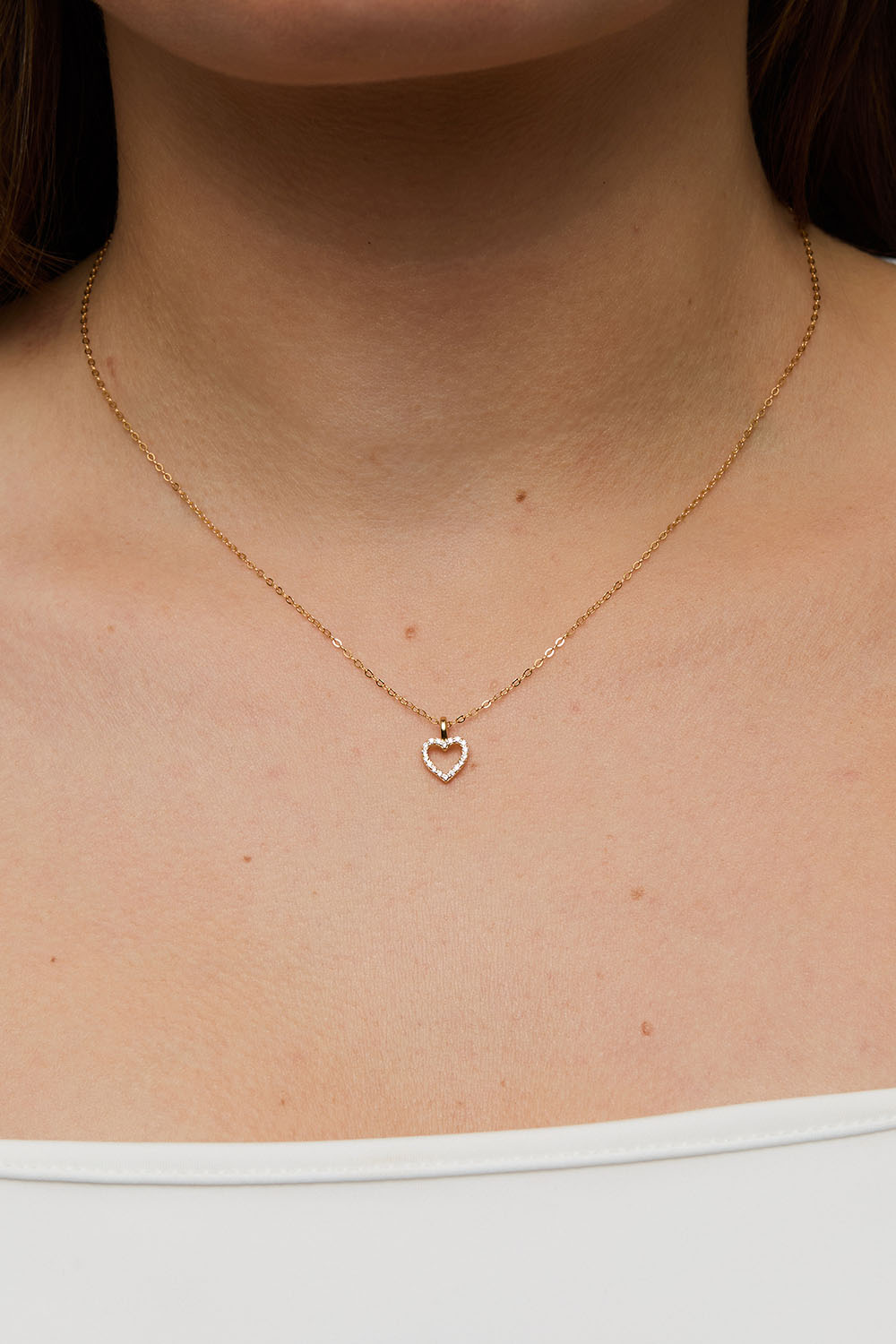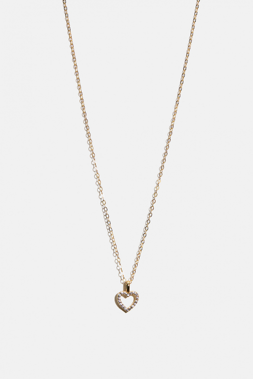 Halskjede i 18k forgylt ekte sølv med en hengende hjerte dekorert med små Cubic Zirconia steiner.
