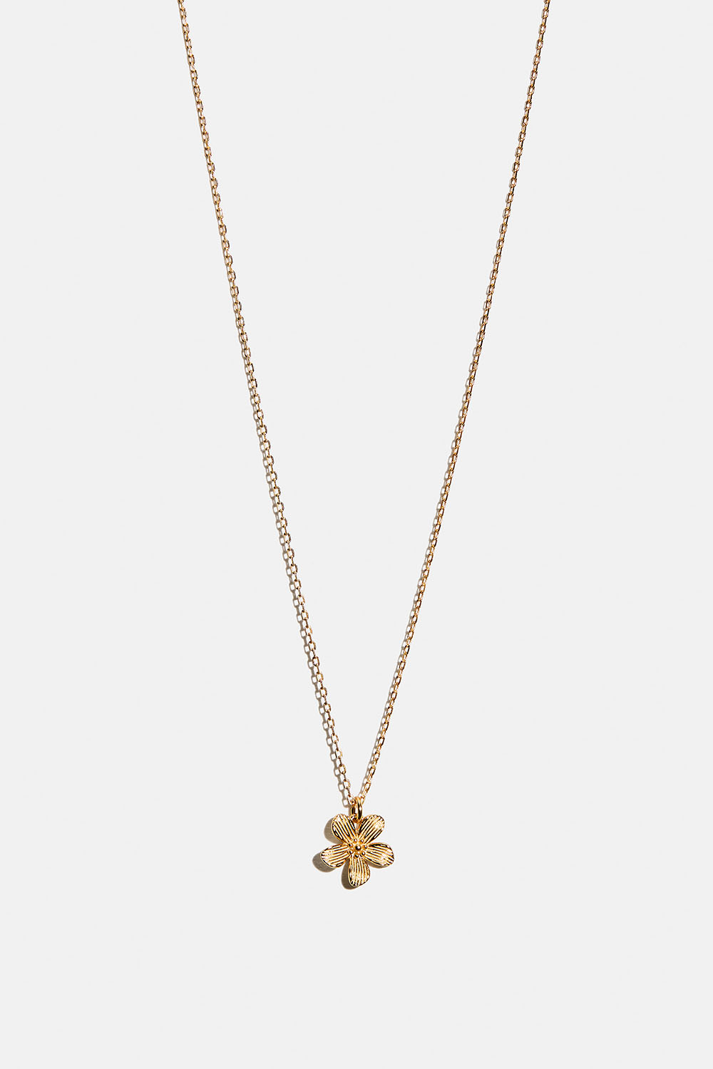 Halskjede i 18k forgylt ekte sølv med teksturert blomst