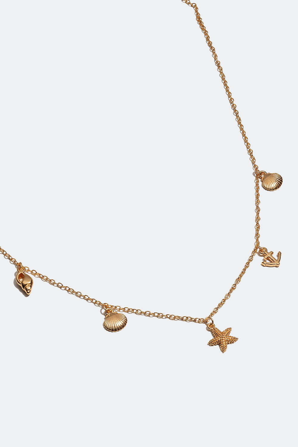 Halskjede i 18K gullbelagt ekte sølv med anheng av snegler, sjøstjerne og anker.