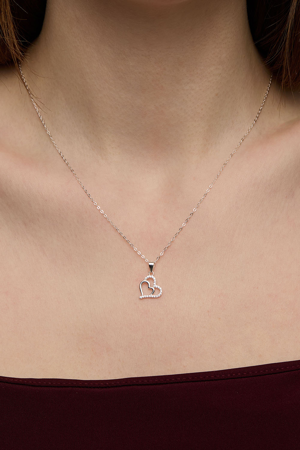 Halskjede i ekte sølv med dobbelt hjerte og kubisk zirkonia. i gruppen Ekte sølv / Sølvhalskjeder / Halskjeder i ekte sølv med anheng hos Glitter (554001441001)
