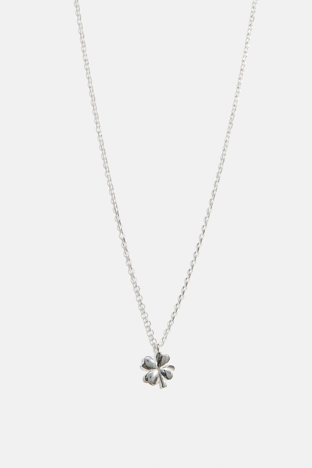 Halskjede i ekte sølv med tynt kjede og firkløveranheng.