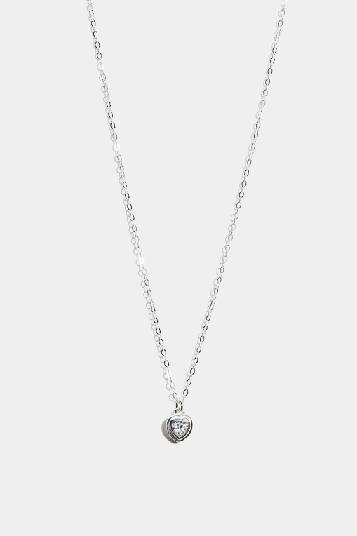 Halskjede i ekte sølv med tynn kjede og et hengende hjerte med kubisk zirkonia-stein.