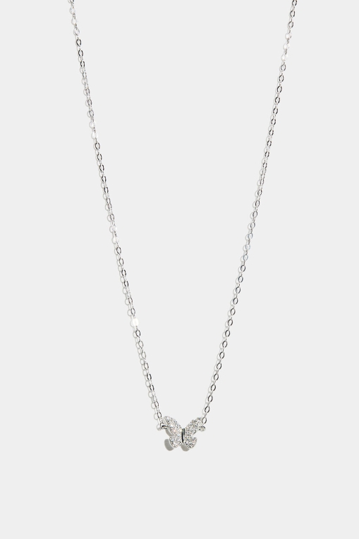 Halskjede i ekte sølv med en sommerfugl dekorert med kubisk zirkonia-steiner.