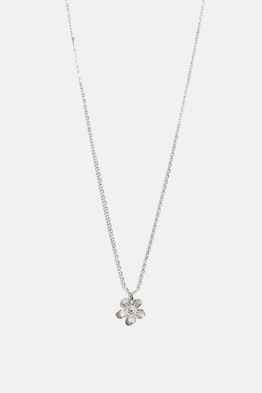 Halskjede i ekte sølv med hengende blomst med teksturert overflate.