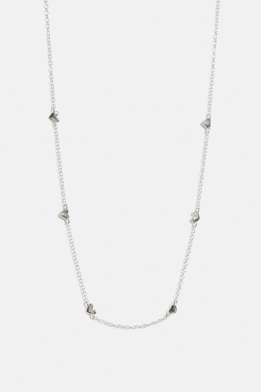 Halskjede i ekte sølv med tynt kjede og 6 små hjerter.