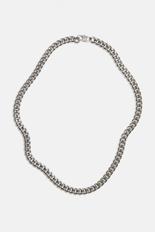 Halskjede med bredt panserkjede i rustfritt stål. Tidløse smykker laget av et vannavstøtende, allergivennlig og slitesterkt materiale som holder dem fine lenge. Bad, dusj og tren uten å bekymre deg for at de mister farge.