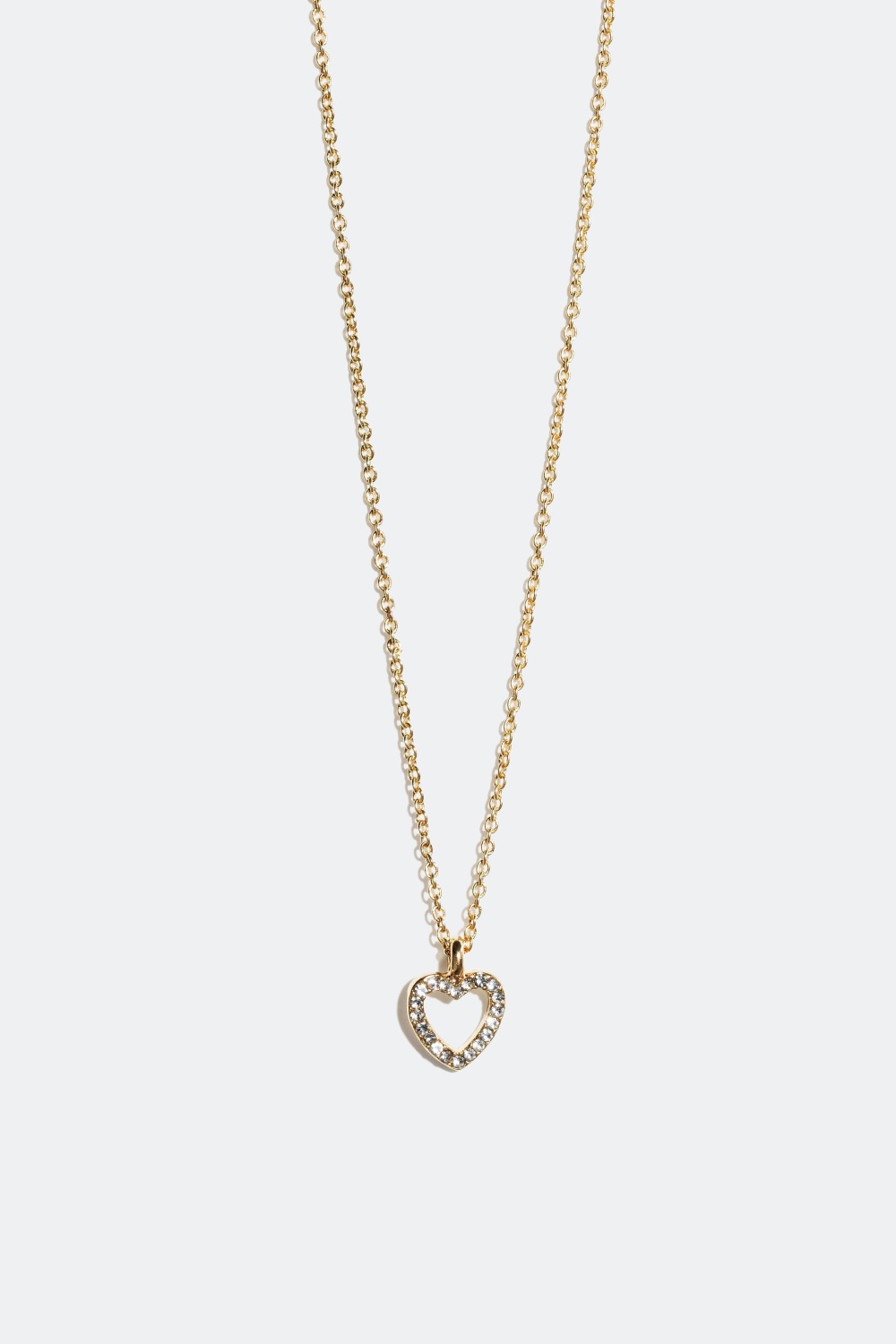 Halskjede med dekorert hjerte anheng - Et tynt og delikat halskjede med et glitrende hjerte. Halskjedet kan forlenges 5 cm. Det er enkelt å matche med flere smykker og passer fint til andre smykker med stener. Halskjede har en premium plating, som betyr at de har en lengre holdbarhet og høyere kvalitet.