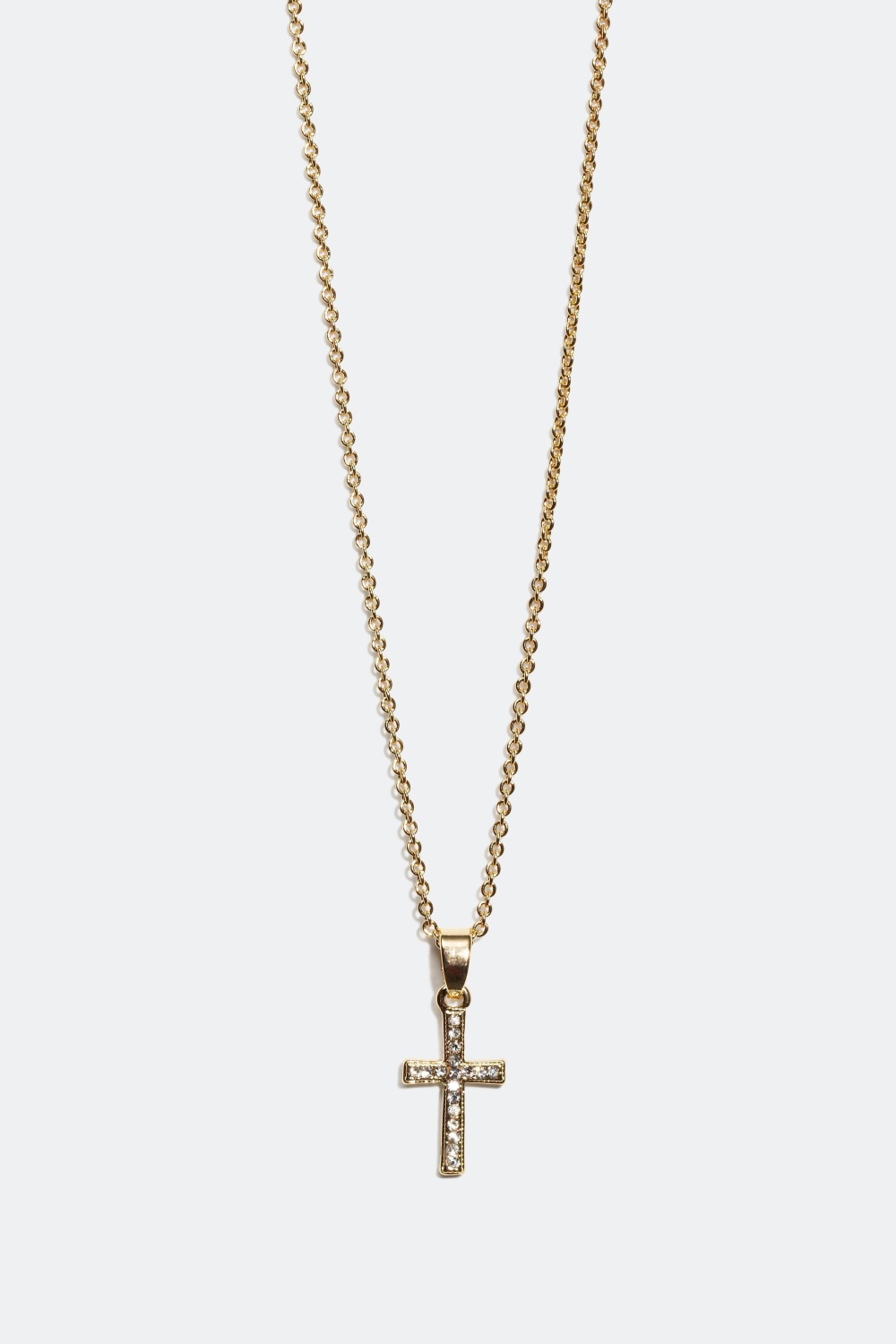 Halskjede med kryss og glass steiner - Halskjede i metall dekorert med et hengende kryss med glass steiner på. Justerbar lengde på kjedet.