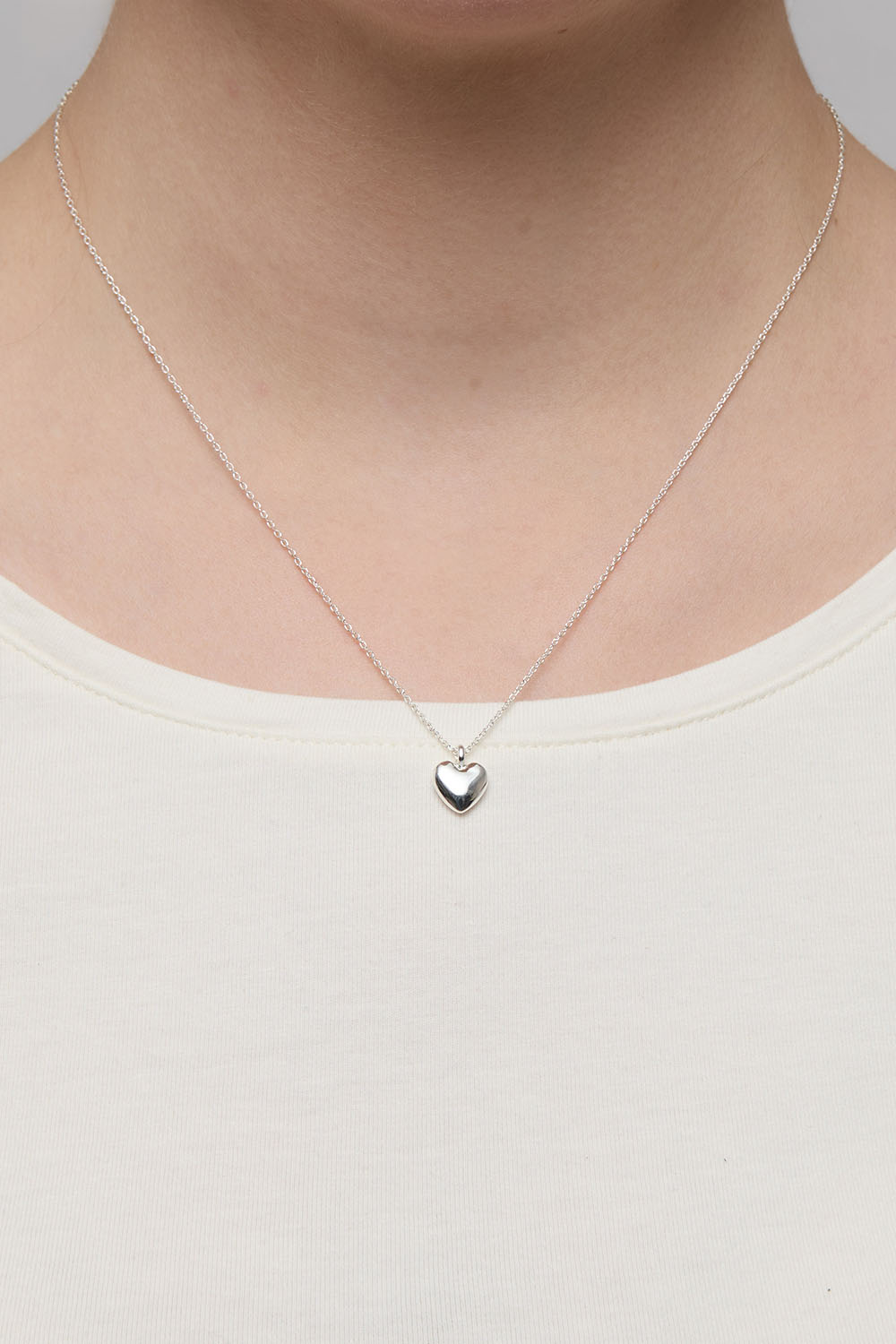Halskjede i metall med tynn lenke og et lite hjerte som anheng. Et enkelt og stilrent halskjede med klassisk anheng som passer til alle anledninger. Perfekt å bruke alene eller i kombinasjon med andre halskjeder for en lagvis look.