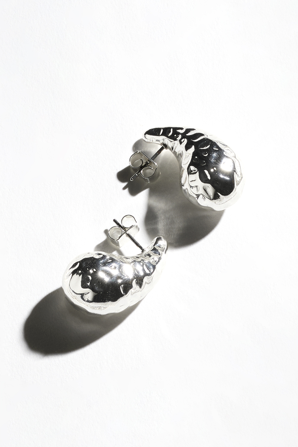 Dråpeformede øredobber i hamret, sølvfarget metall.