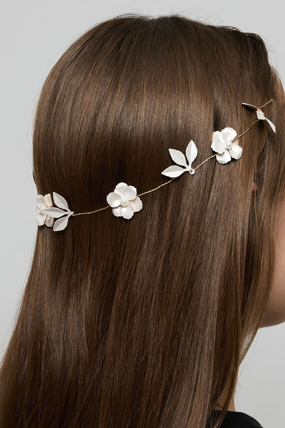 Hårdekorasjon med hvite blomster og blader i gruppen Håraccessories / Spenner & klemmer / Hårdekorasjon hos Glitter (334001513100)