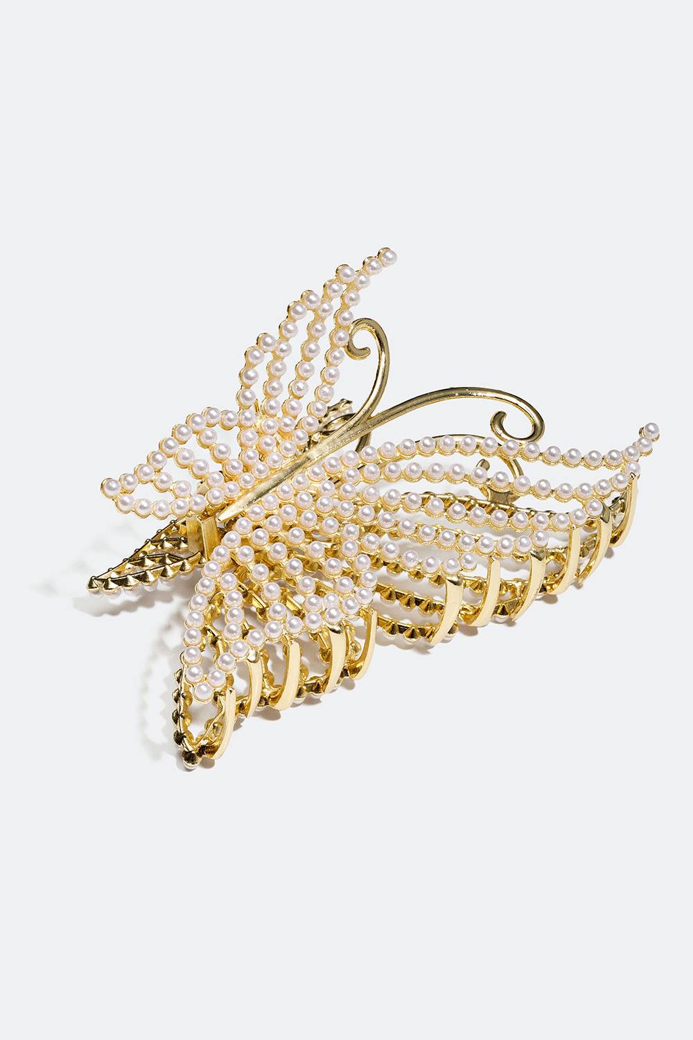 Hårklemme med gullfarget sommerfugl og perler i gruppen Håraccessories / Spenner & klemmer / Hårklyper hos Glitter (331001213100)