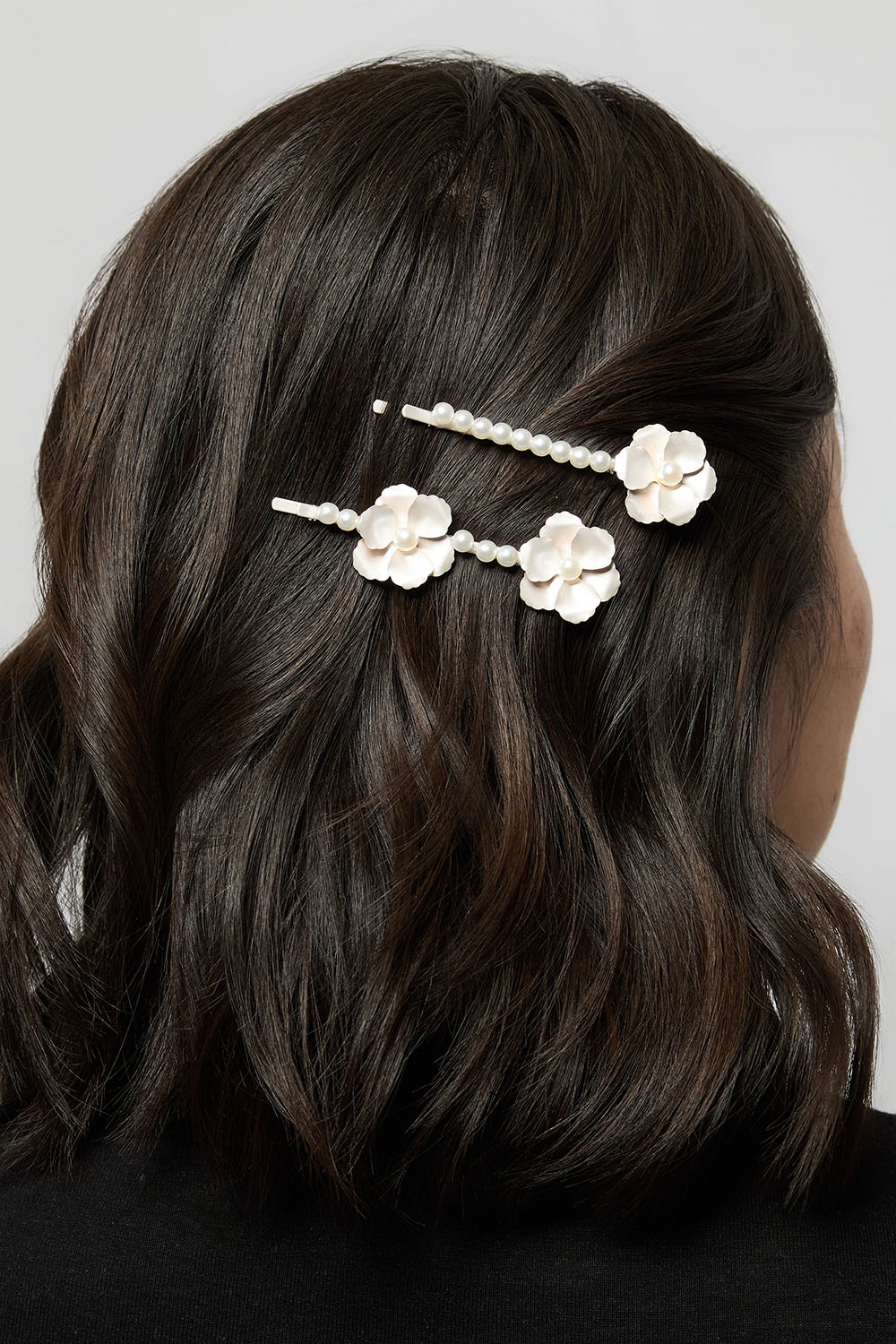 Hårnåler med hvite blomster og perler, 2-pakning i gruppen Håraccessories / Spenner & klemmer / Hårspenner hos Glitter (335002113100)