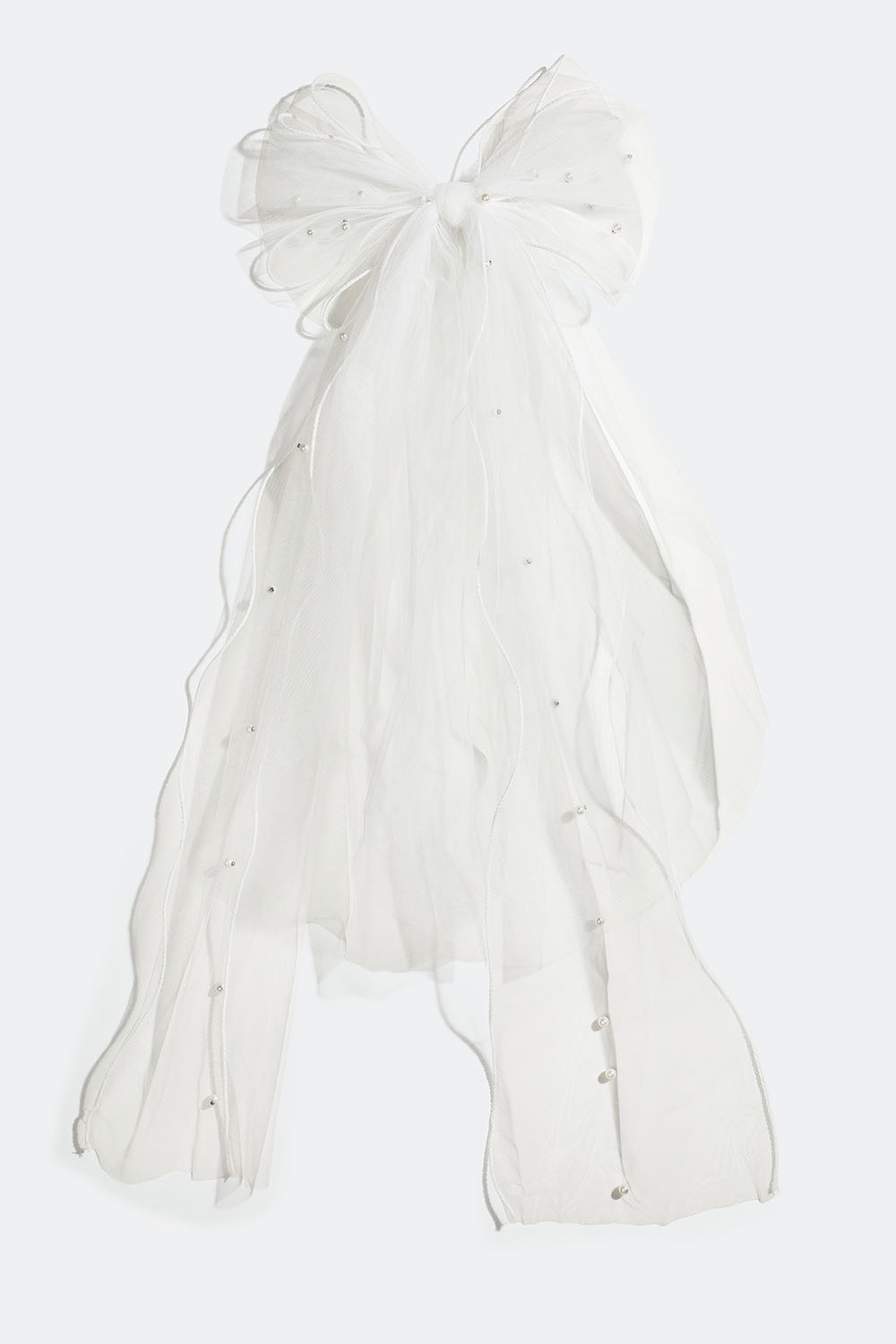 Dekorativ hårspenne med stor sløyfe i hvit organsa med små, hvite perler. En flott detalj til frisyren og den perfekte hårpynten til for eksempel bryllup.