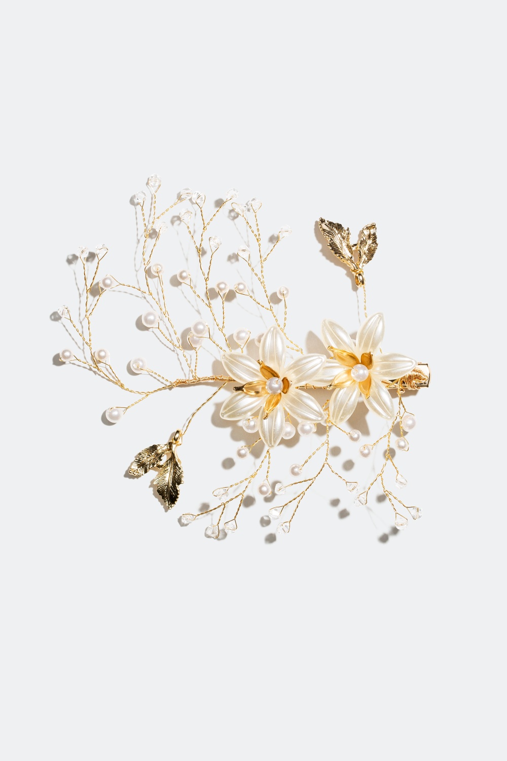 Hårspenne med perler og gylne dekorasjoner i form av blomster og blader i gruppen Håraccessories / Spenner & klemmer / Hårdekorasjon hos Glitter (326115)