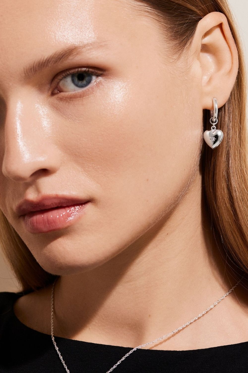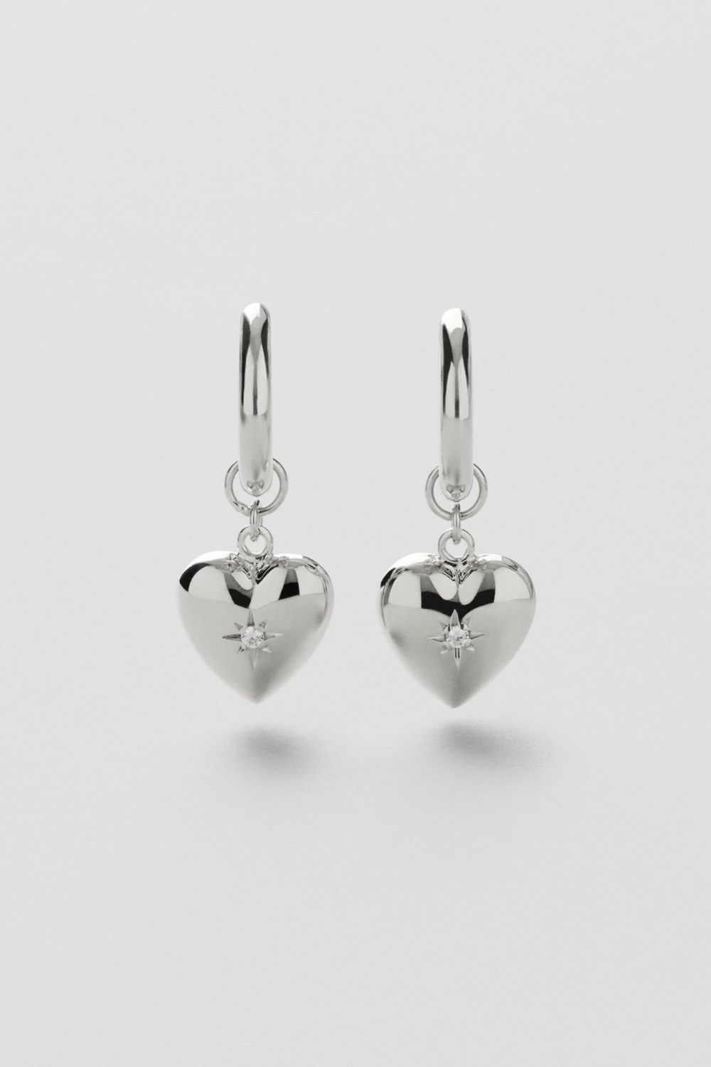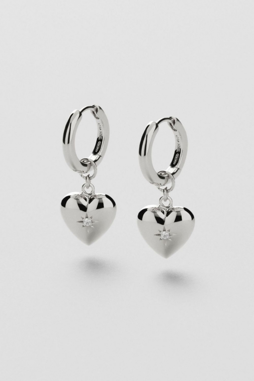 Øredobber med rundt hjerte i ekte sterlingsølv 925, pyntet med klar Cubic Zirconia-sten.