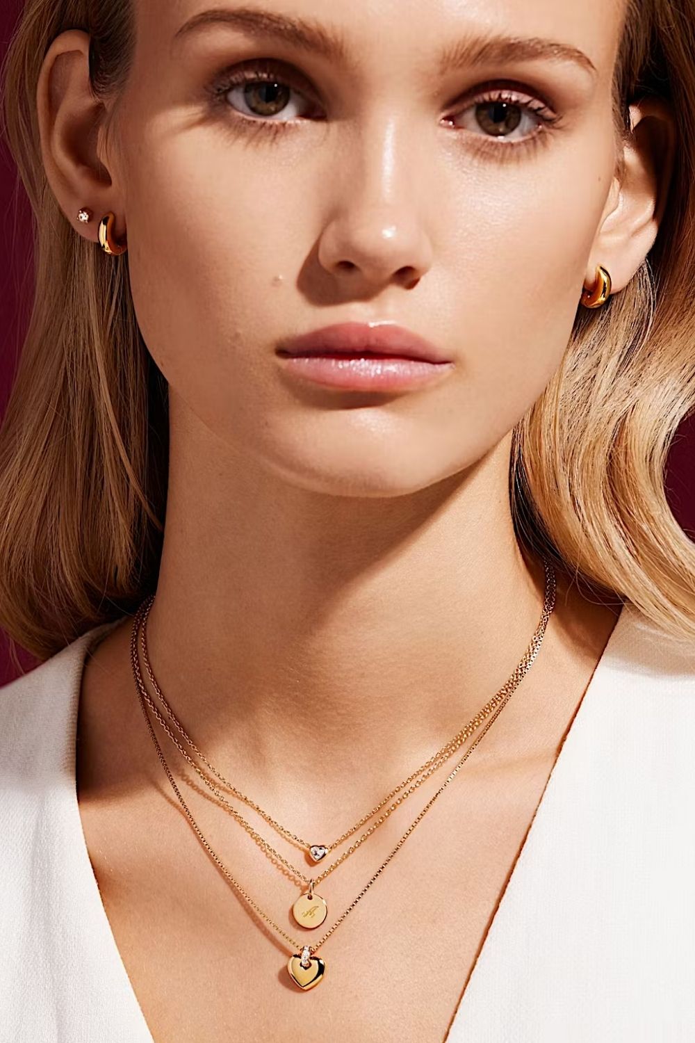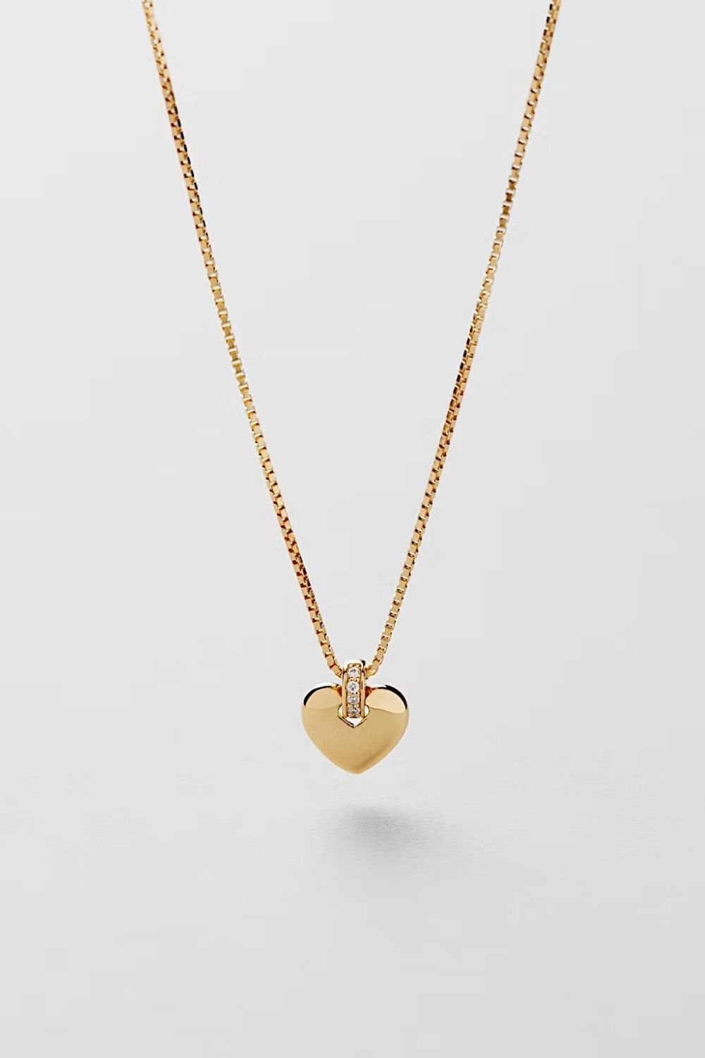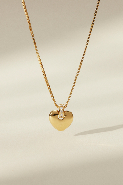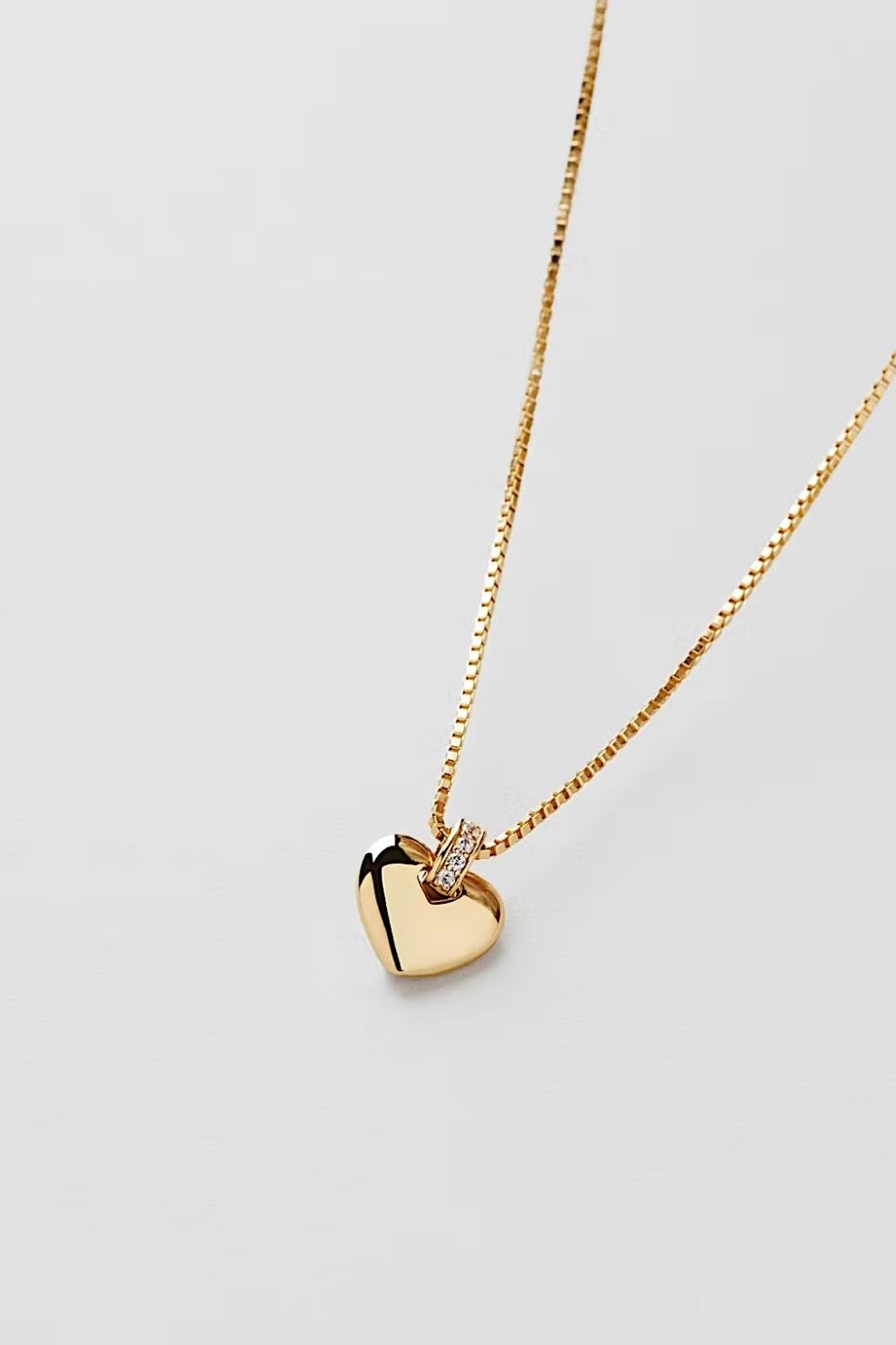 Kjedet halskjede med ett hjerte, forgylt med ekte 24k gull og en kjerne av ekte sterlingsølv 925.