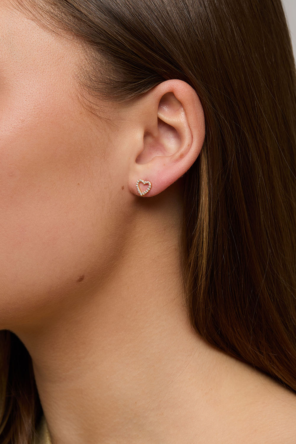 Hjerteformede øredobber i 18k forgylt ekte sølv pyntet med små Cubic Zirkonia-steiner.