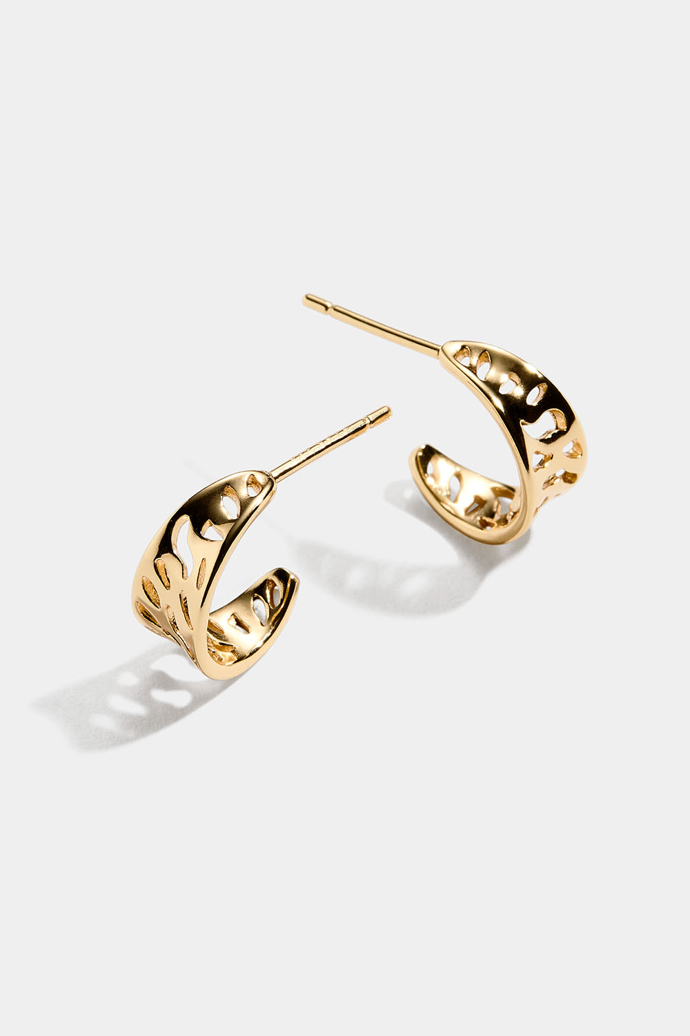 Brede hoops i 18k forgylt ekte sølv med utskårne, avrundede detaljer.