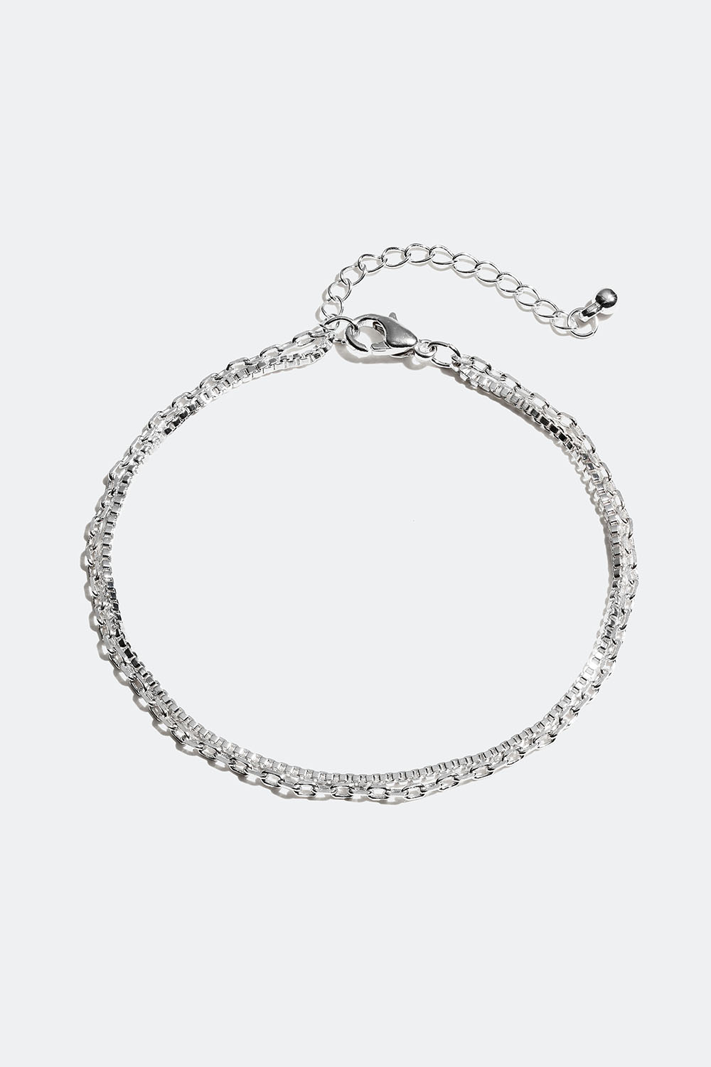 Stilrent armbånd med doble kjeder i metall. Armbåndet har et tynt venetiansk kjede og et klassisk ankerkjede. De to lenkene er festet sammen og kan ikke brukes separat.