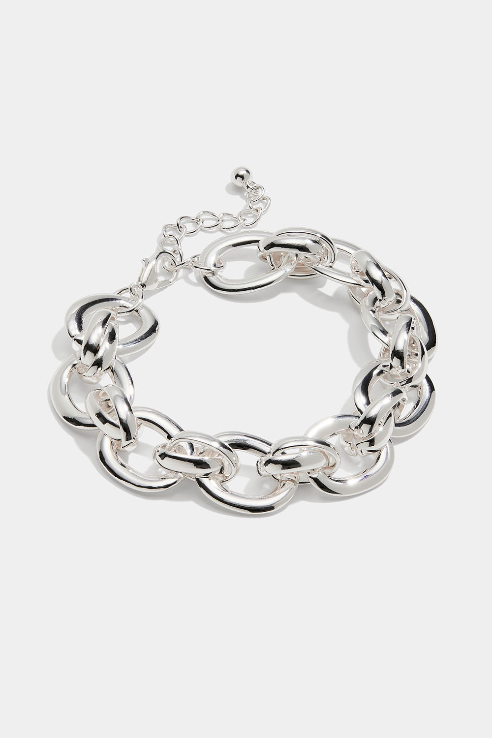 Sølvfarget kjedearmbånd med større, ovale, flate ledd.