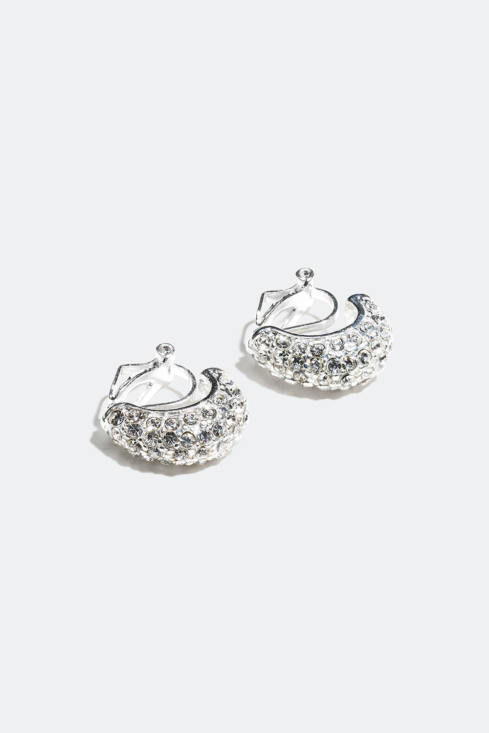 Sølvfargede klipsøreringer med avrundet form, dekorert med glassteiner.