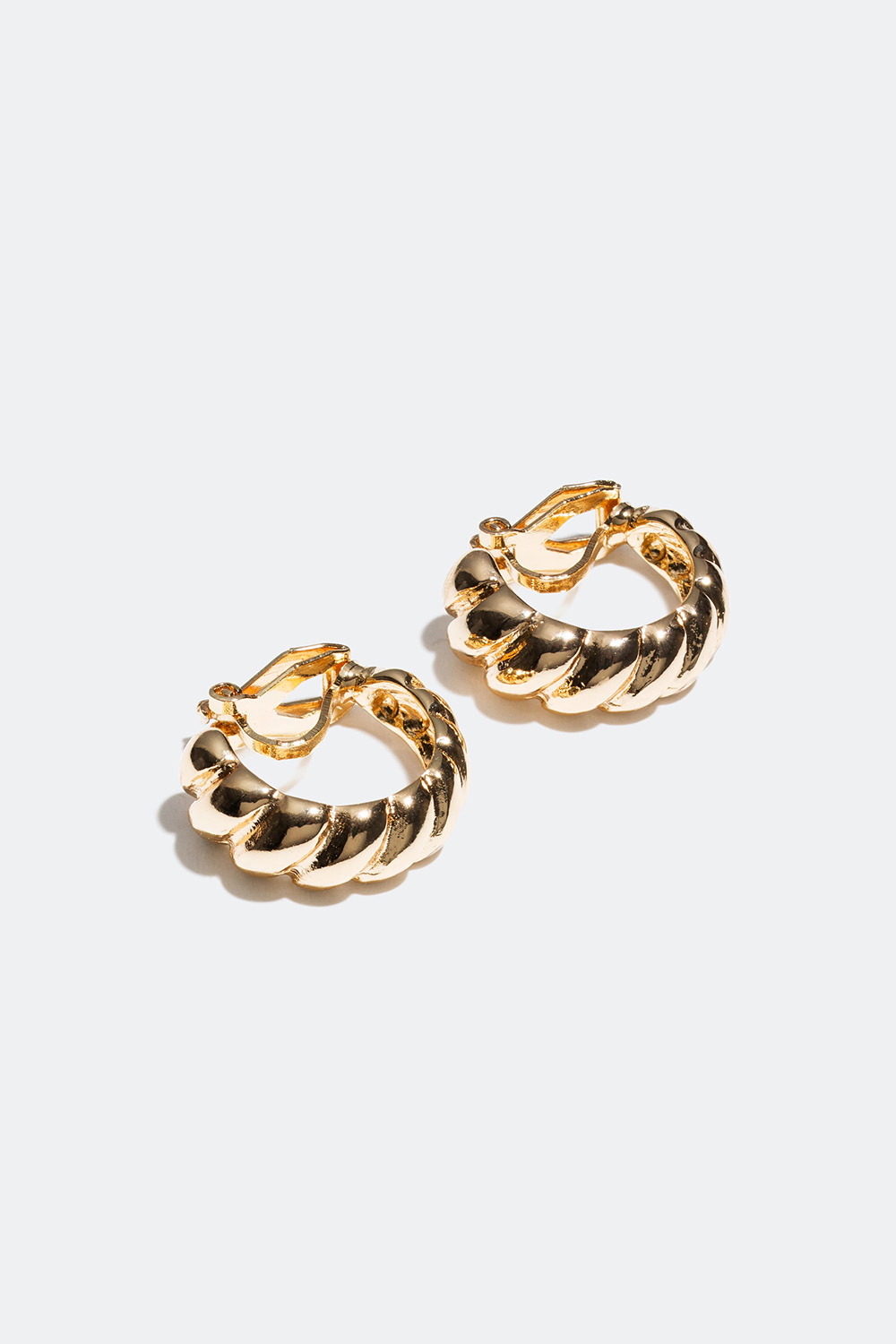 Klipsøreringer i gyllent metall med ribbemønster.