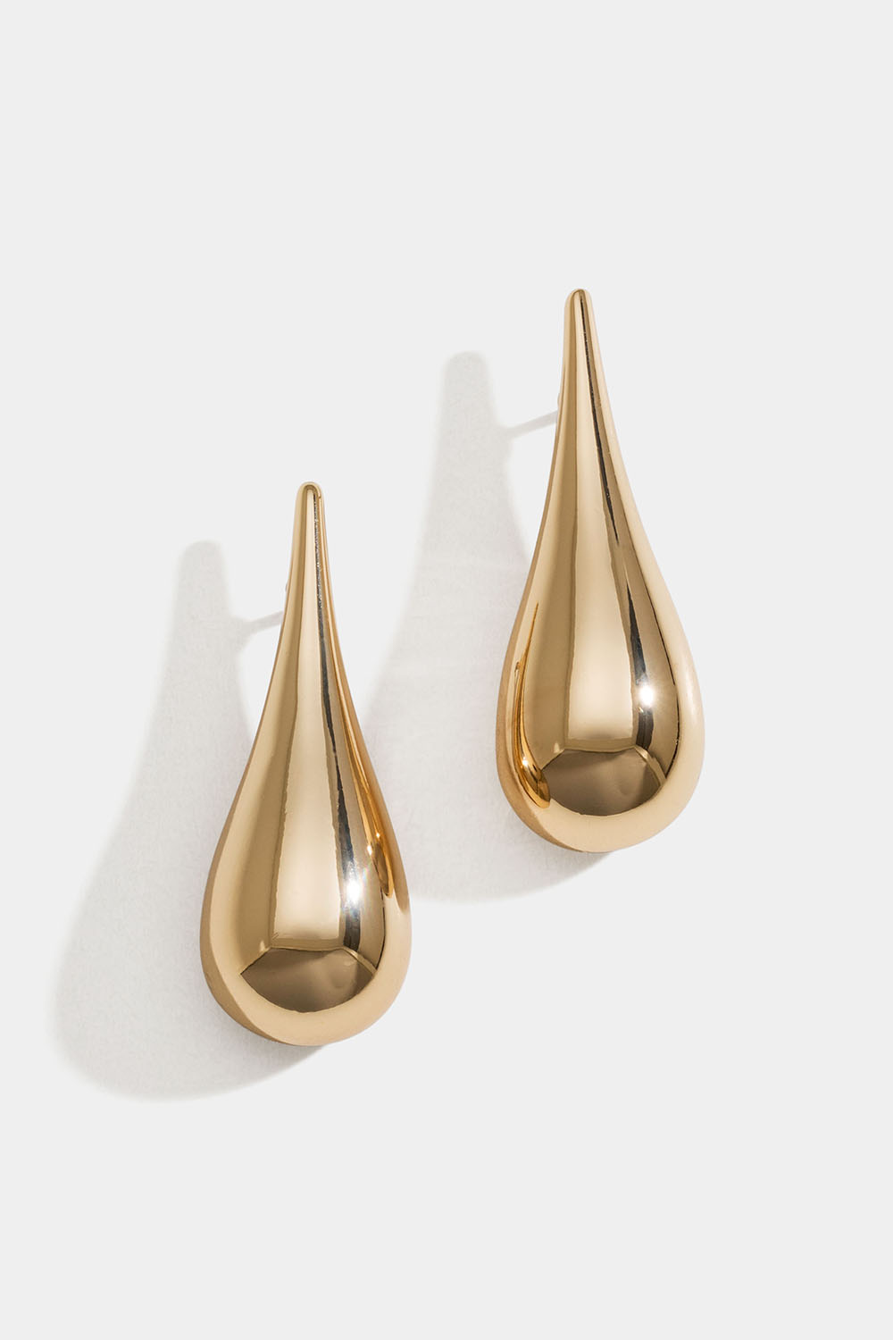 Lange, dråpeformede øredobber i gullfarge