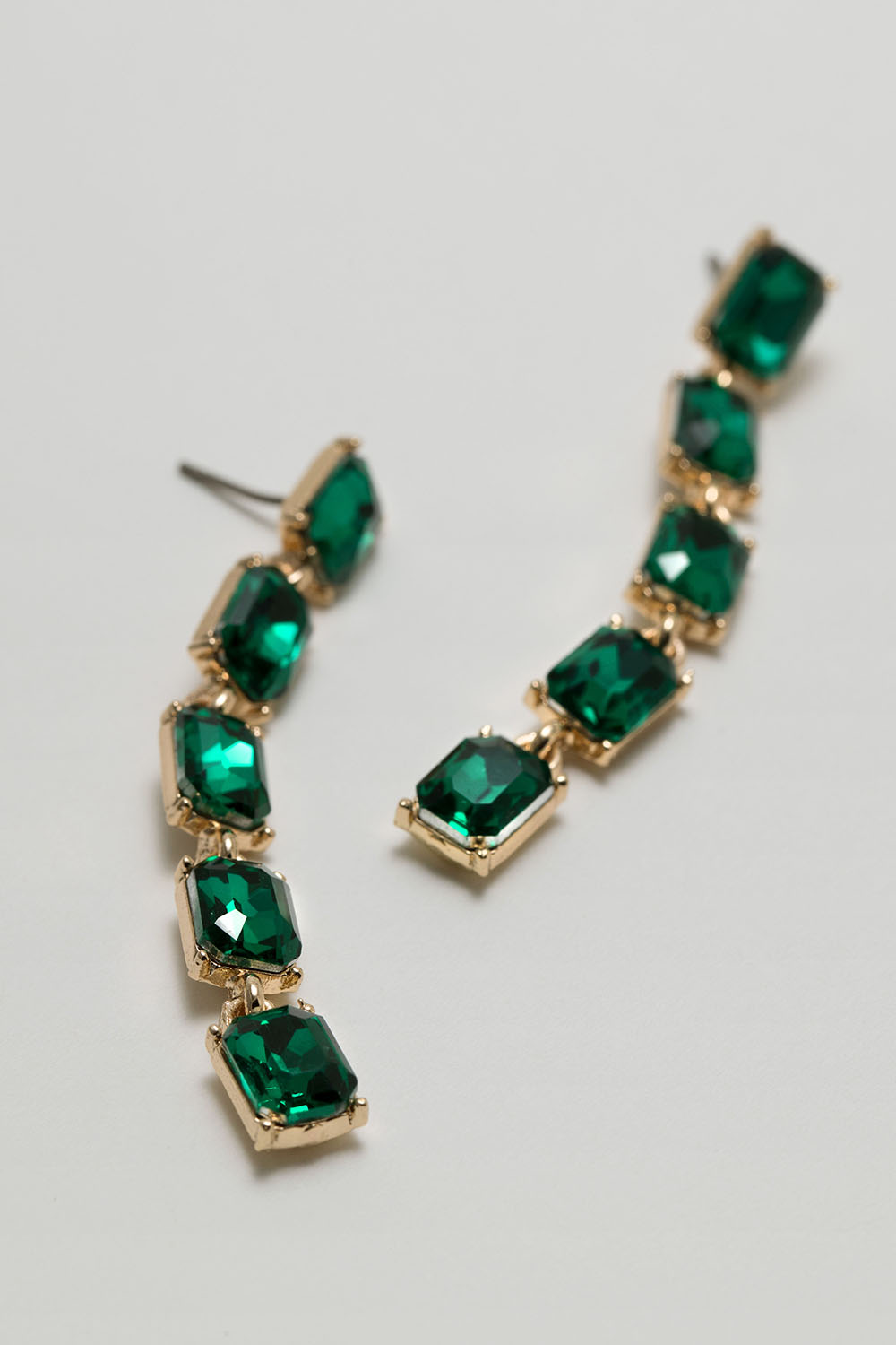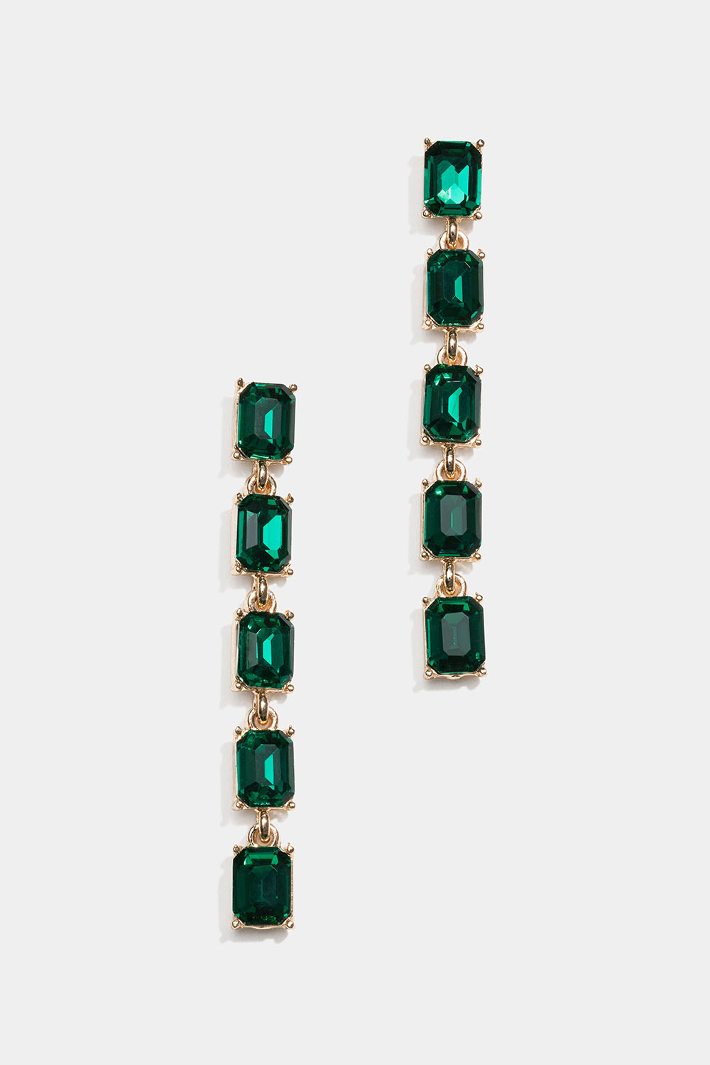 Lange gullfargede øredobber med grønne glassteiner i gruppen Smykker / Øredobber / Rhinestone hos Glitter (253007747502)