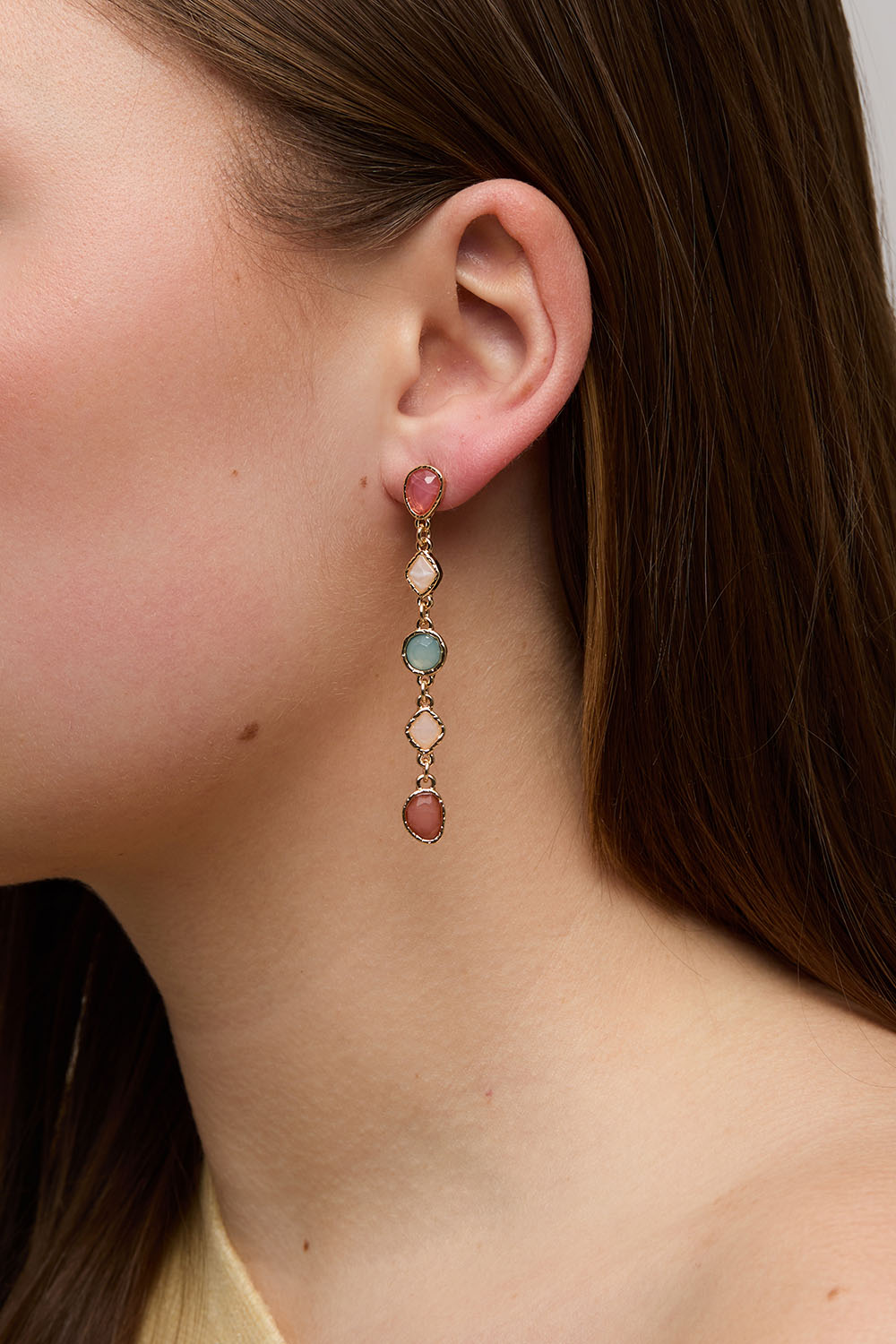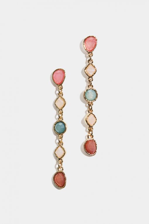 Lange øredobber med steiner i forskjellige farger