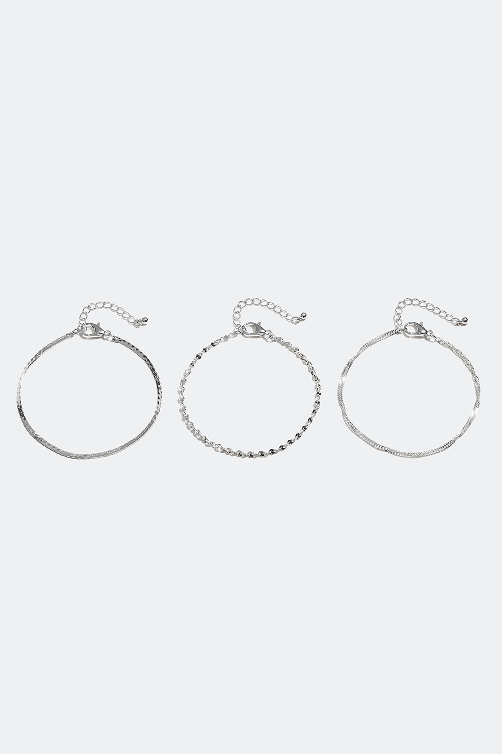 3-pakning armbånd med forskjellige lenker. Tre par stilrene armlenker som passer til alle anledninger, kan brukes sammen eller hver for seg.
