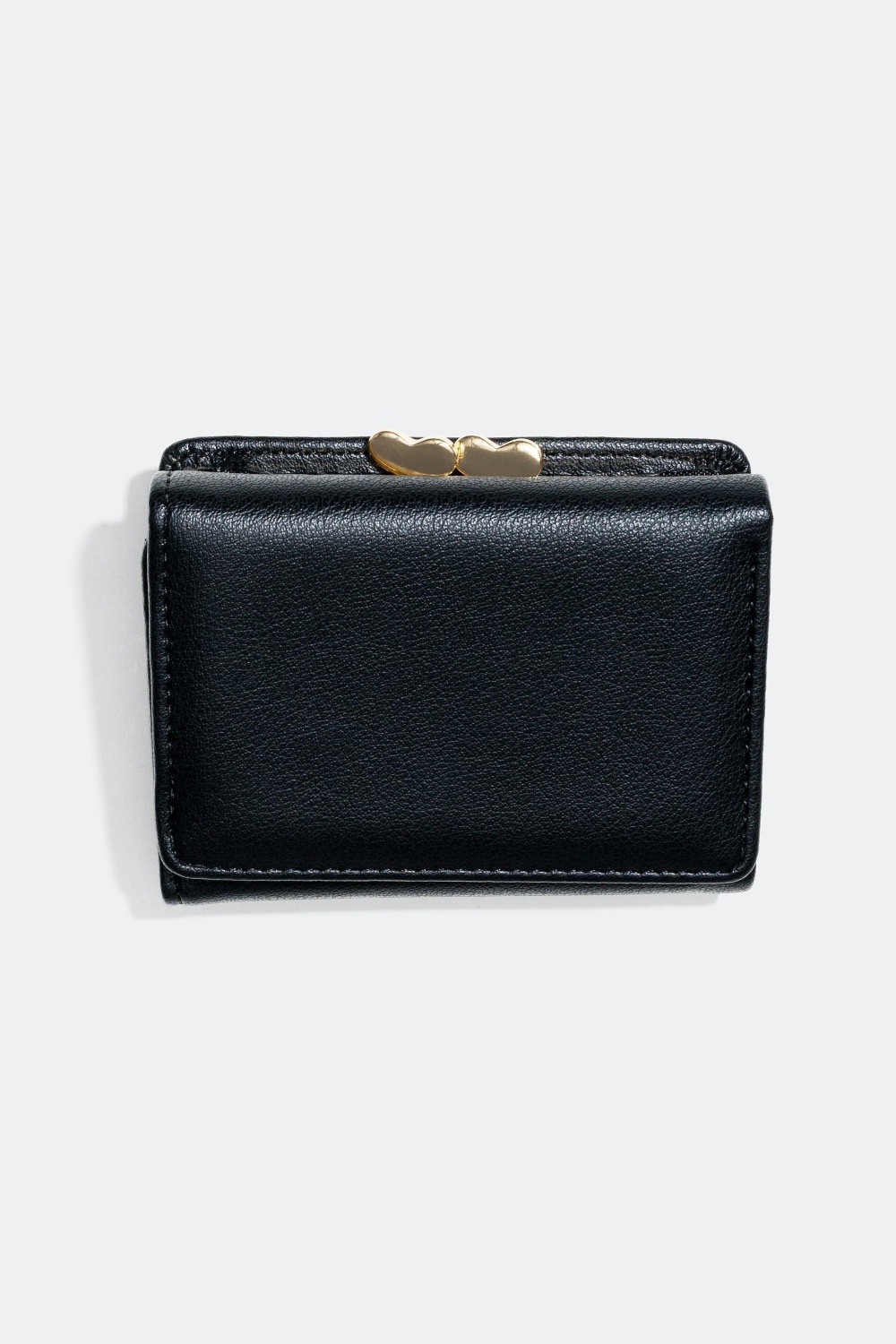Lommebok med hjertelås - Praktisk lommebok i mindre modell i skinnimitasjon. Lommeboken inneholder tre innerlommer; en seddellomme i tillegg til kortlommer med plass til fem kort. Lommeboken har også en myntlomme med en hjertelås i gullfarget metall.