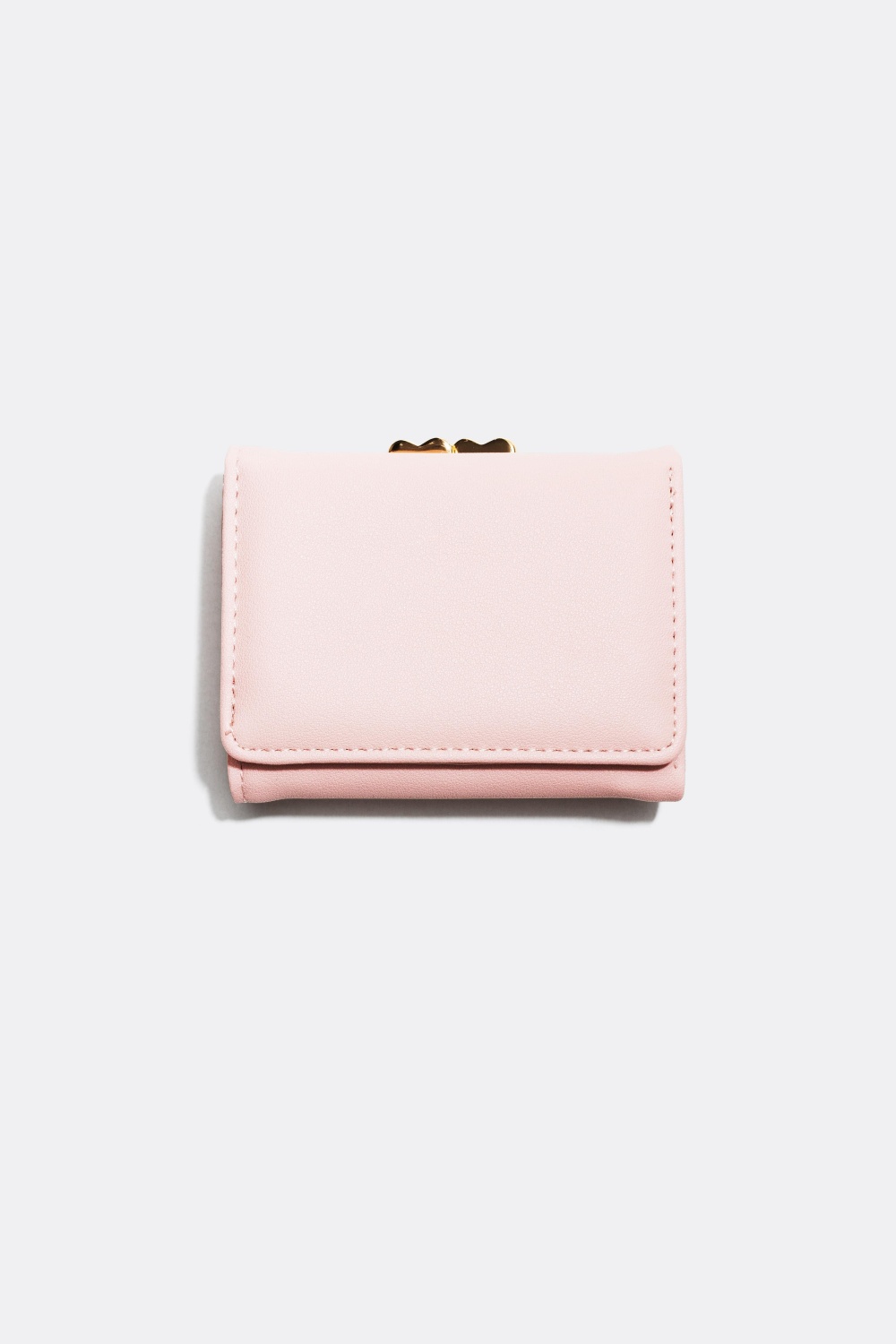 Lommebok med hjertelås - Praktisk lommebok i mindre modell i skinnimitasjon. Lommeboken inneholder tre innerlommer; en seddellomme i tillegg til kortlommer med plass til fem kort. Lommeboken har også en myntlomme med en hjertelås i gullfarget metall.
