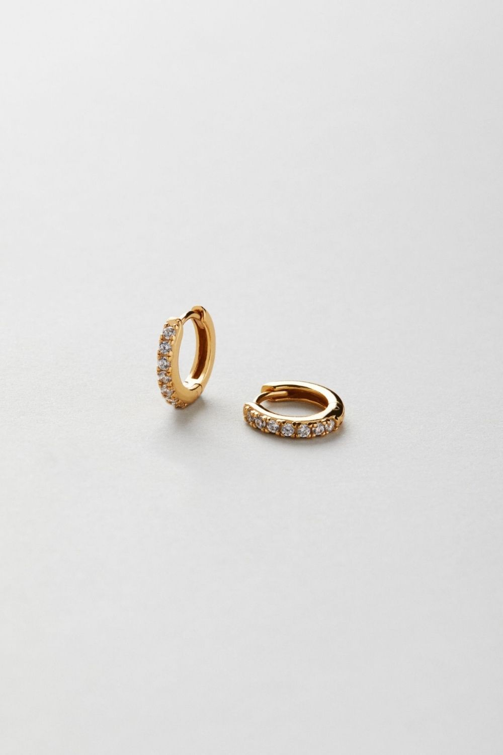 Øredobber pyntet med klare Cubic Zirconia-stener, forgylt med 18k gull og med en kjerne av ekte sterlingsølv 925.