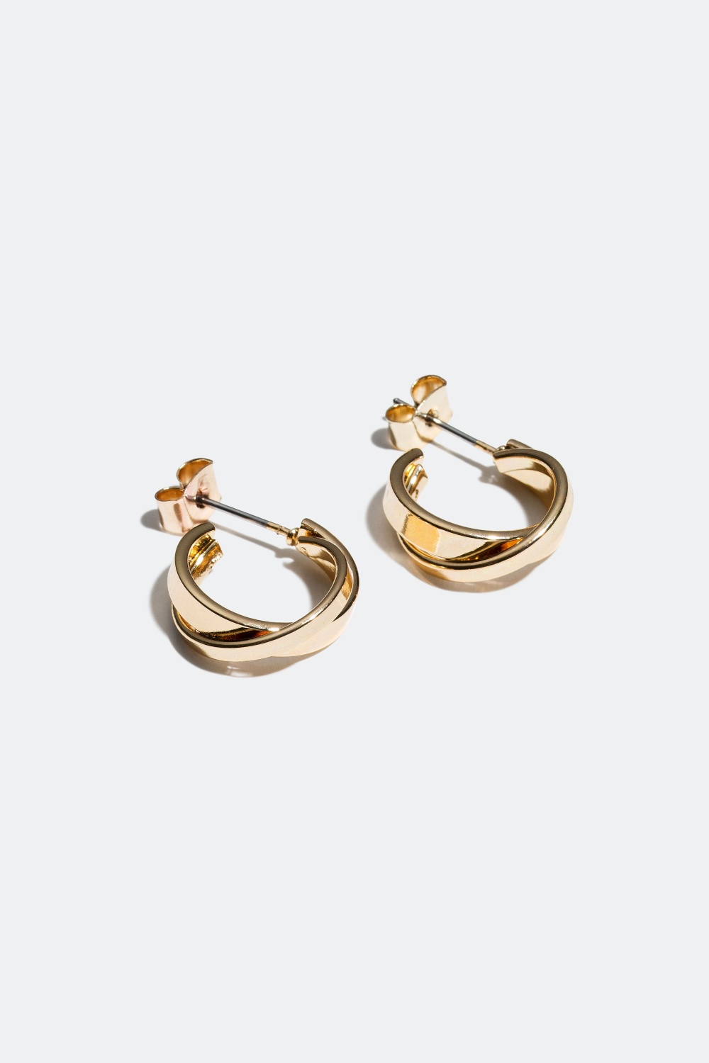 Mindre, glatte, kryssede øreringer, der den ene ringen er smalere enn den andre. Kommer i gull- eller sølvfarget metall.