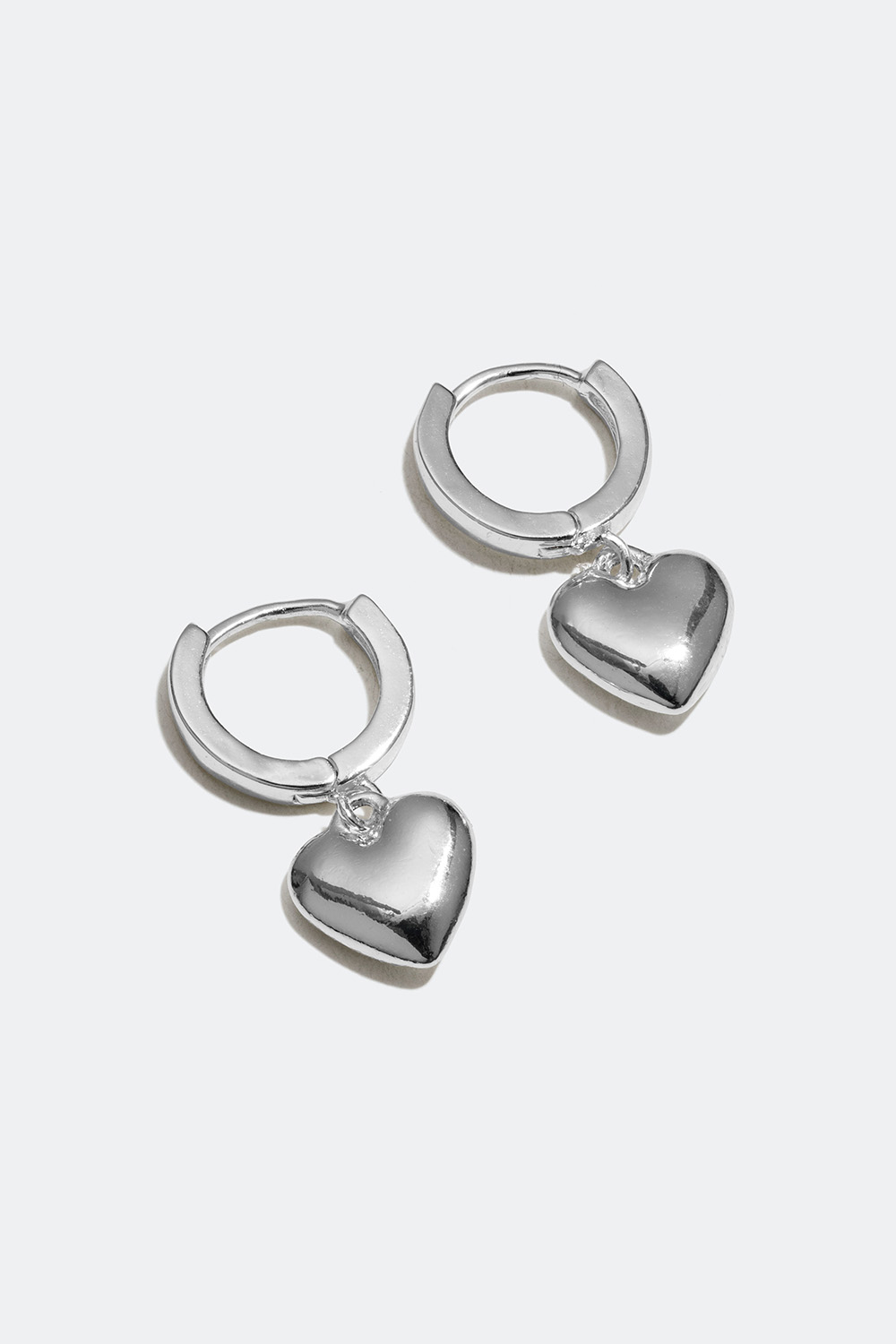 Mini-bøyler med dekorativt hjerteanheng i blankt metall. Et par stilrene øredobber i romantisk design, som passer til alle anledninger og antrekk. Åpnes og lukkes enkelt med en stift som klikkes på plass.