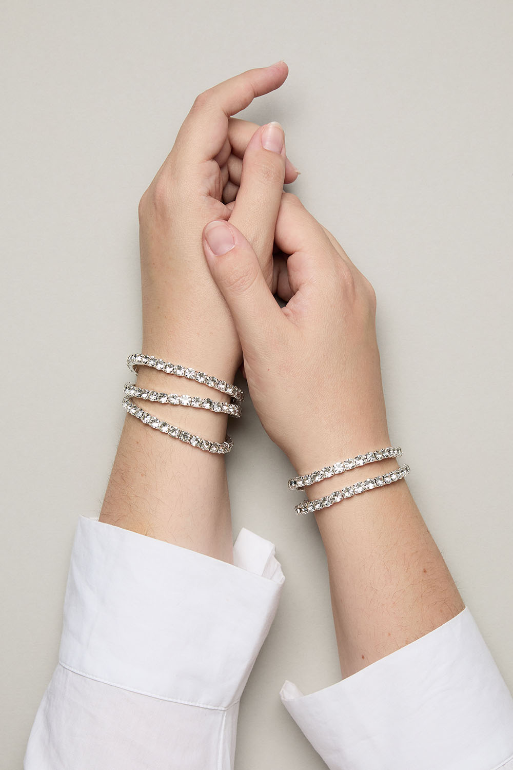 Elastiske strassarmbånd dekorert med runde glassteiner. Kommer i t5-pakning.