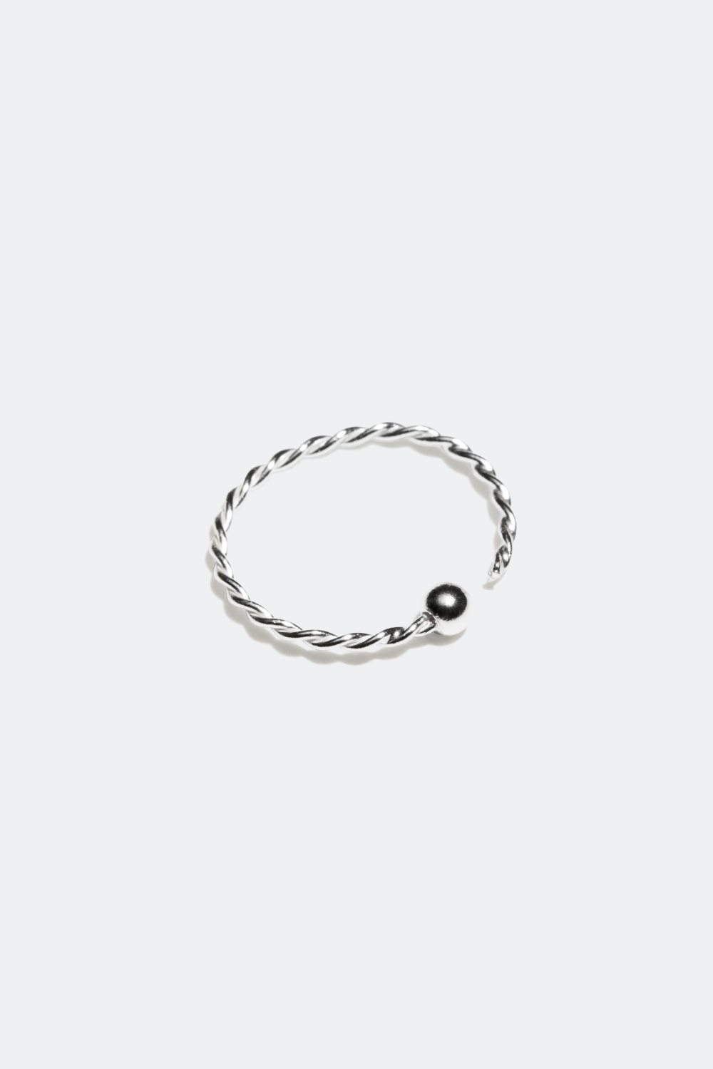 Nesepiercing i ekte sølv, ring med vridd overflate - En nesepiercing i ekte sølv i form av en ring med vridd overflate og en metallkule som åpnes.