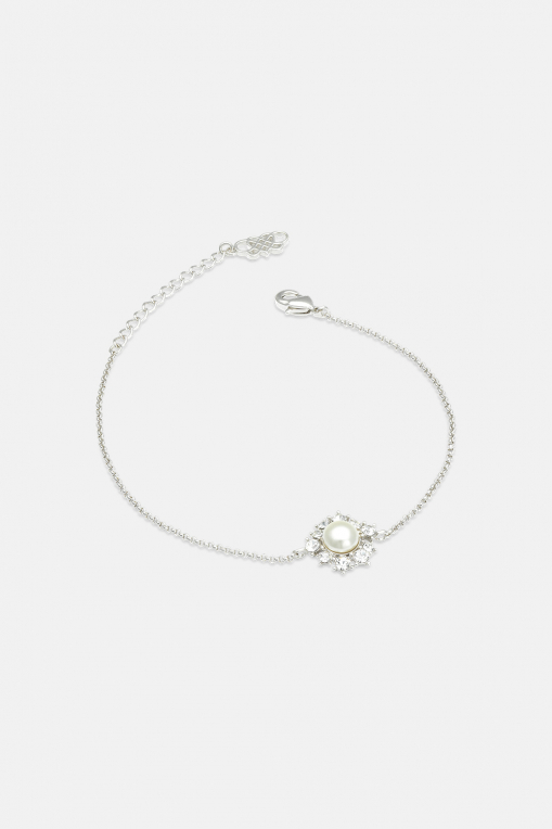 Emily armbånd gløder av lys og har en fantastisk elfenbensperle som sammen med små, klare sølvkrystaller. skaper en nydelig helhet. Innfattet i sølv. Fullfør looken med andre smykker fra vår Emily-kolleksjon.