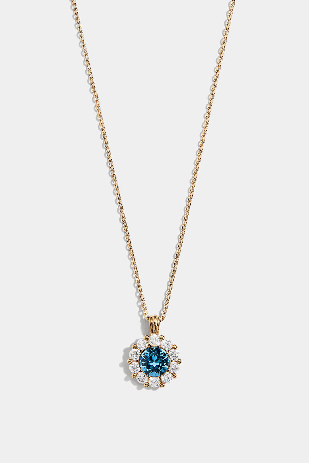 Det utsøkte designet gjør dette kjedet svært allsidig og egnet til alle stiler og anledninger. En delikat isblå swarovski-stein omkranset av mindre, hvite opal-krystaller. Gjør looken komplett med andre produkter fra Sofia-kolleksjonen.