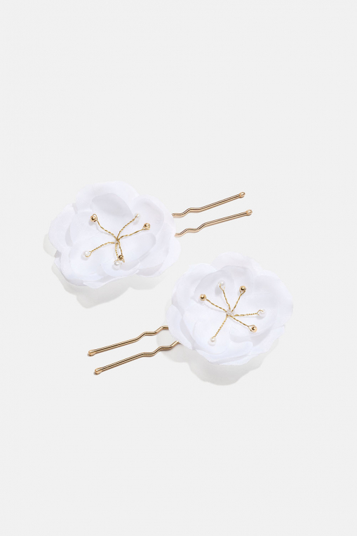 Oppsatsnåler med hvite stoffblomster, 2-pakning i gruppen Håraccessories / Spenner & klemmer / Hårdekorasjon hos Glitter (335002183000)