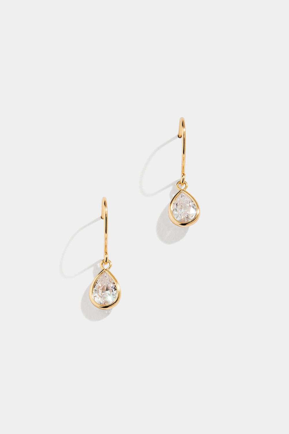 Øredobb i 18 k forgylt ekte sølv med en større, innfattet, hengende Cubic Zirconia-sten.