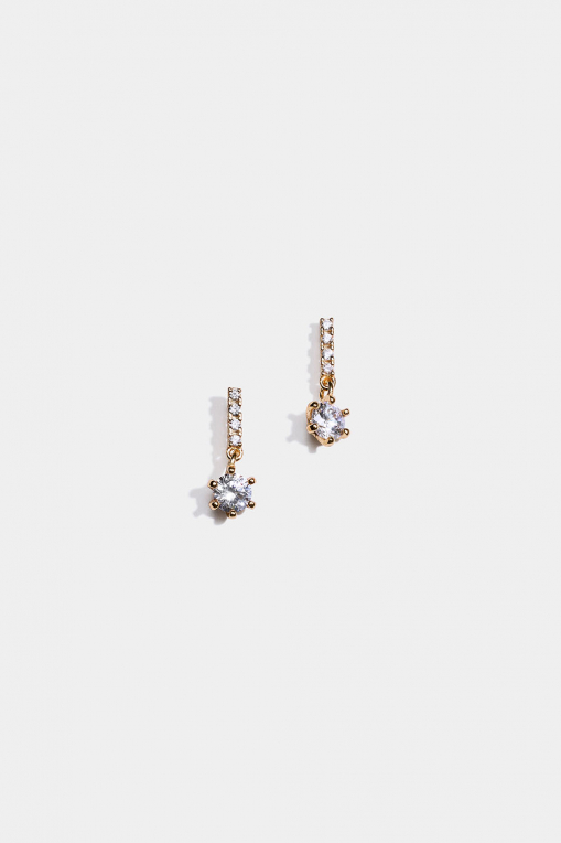 Øredobber i 18 karat gullbelagt sterlingsølv med stenger og runde kubiske zirkoniaanheng
